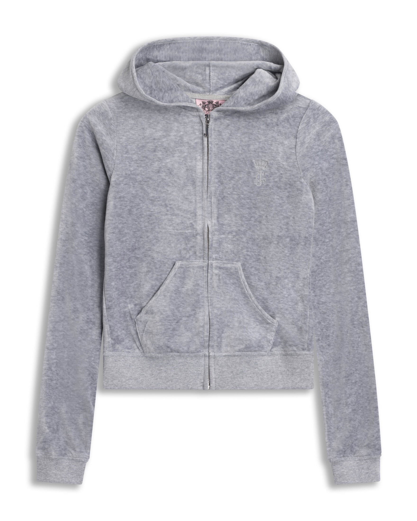 Hettegenser til dame fra Juicy Couture. En tidløs hettejakke i myk velour som kombinerer komfort og luksus. Den har klassisk Juicy-passform, glidelås i front og praktisk kengurulomme. Diskret logo på brystet gir et elegant preg. Perfekt til både hverdagsbruk og avslappede anledninger.