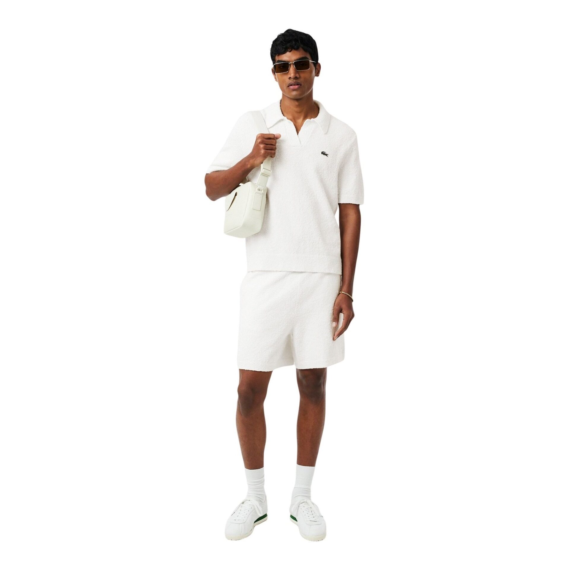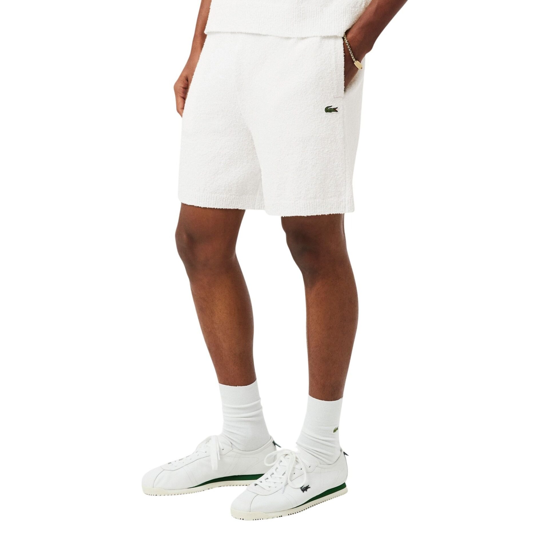 Shorts til herre fra Lacoste. Shorts i myk bouclé-kvalitet med en unik, strukturert overflate. Komfortabel passform med ribbede detaljer som gir et avslappet uttrykk. Perfekt til sommeren, avsluttet med brodert krokodillelogo.