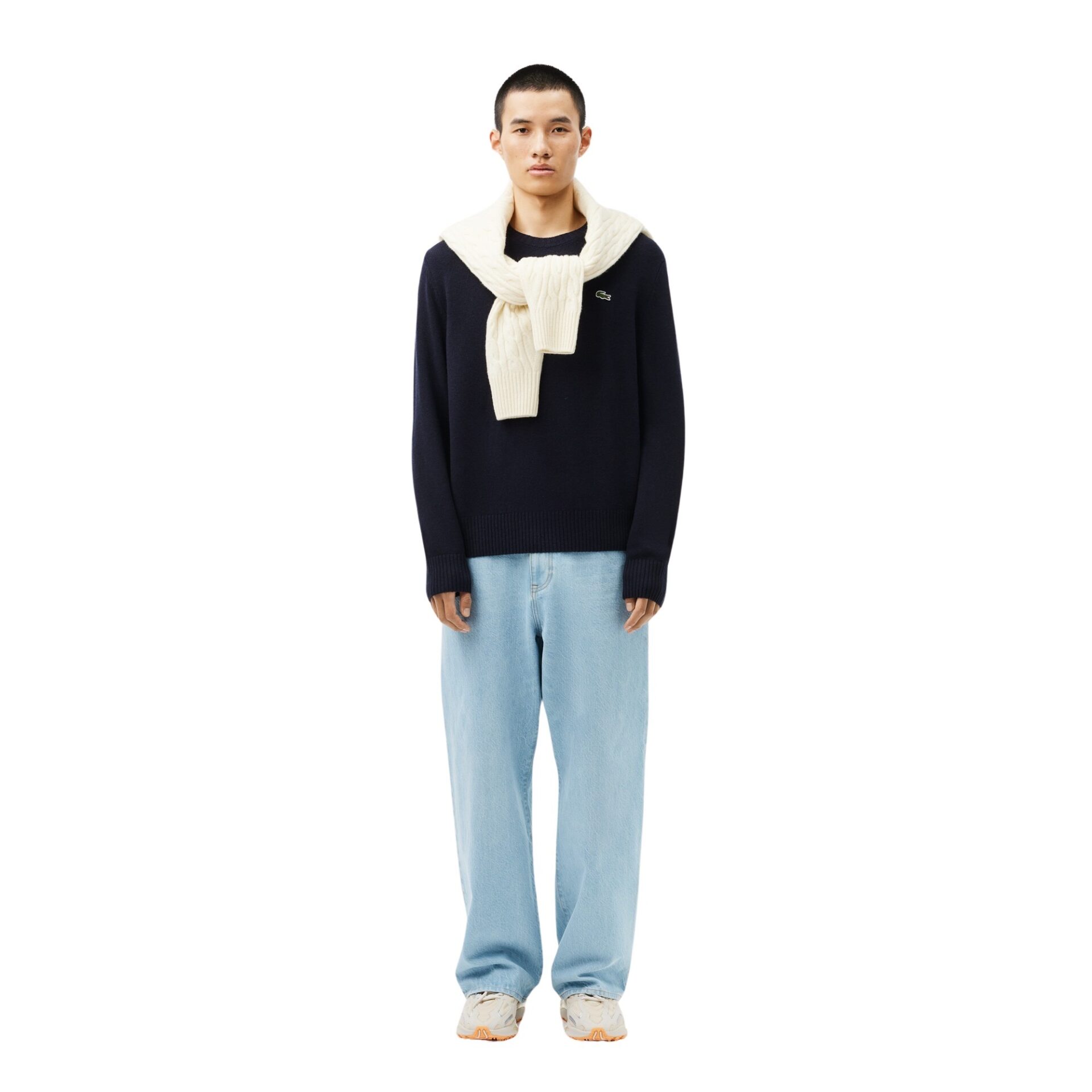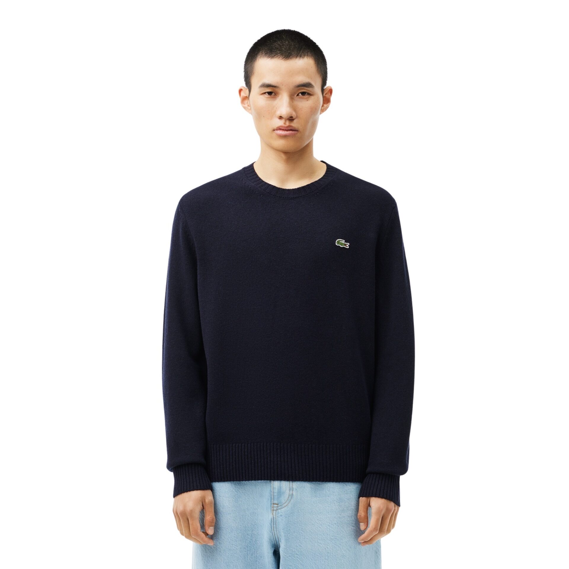 Genser til herre fra Lacoste, laget i myk og luftig kardet ull. Genseren har en klassisk, ledig passform og er prydet med krokodillelogoen på brystet.