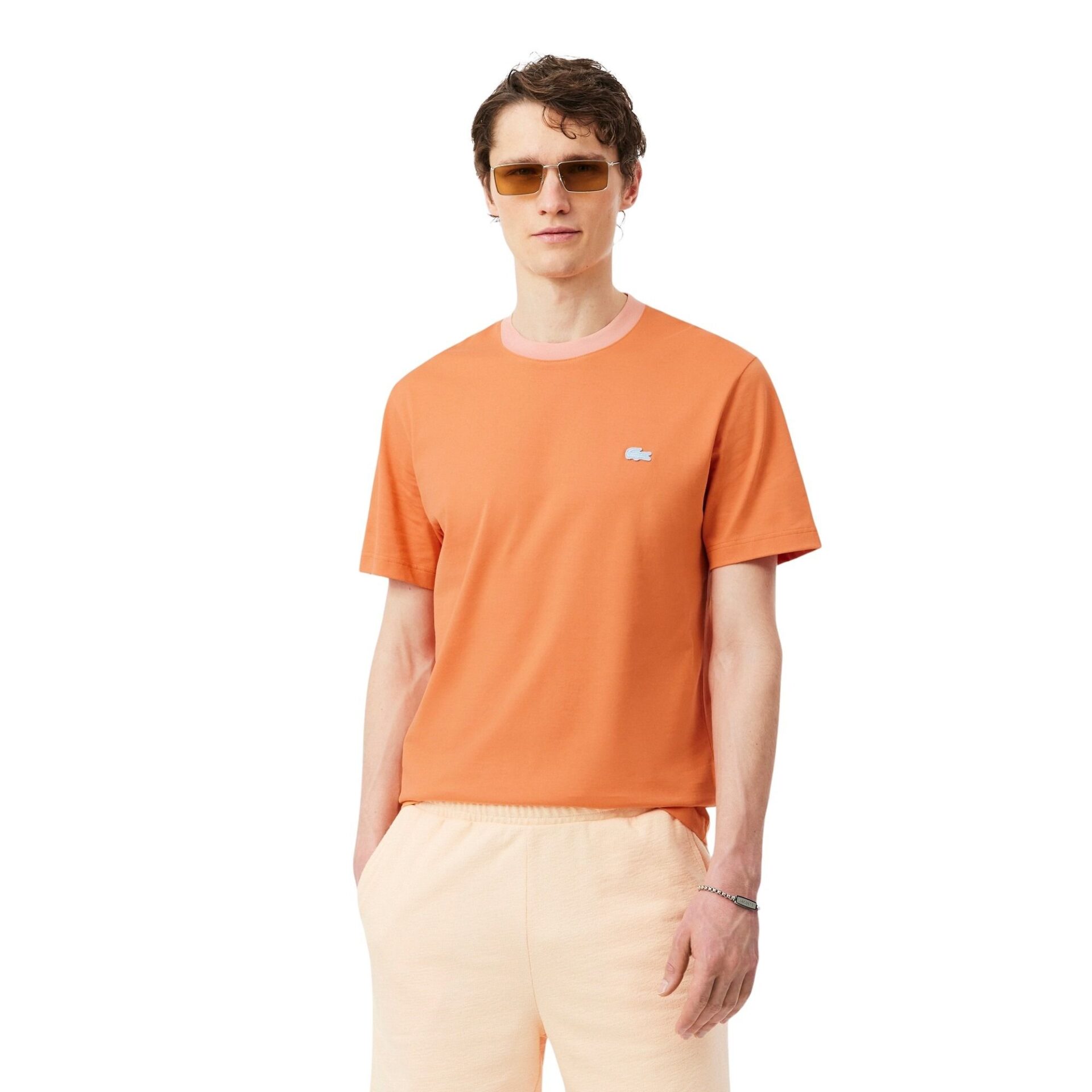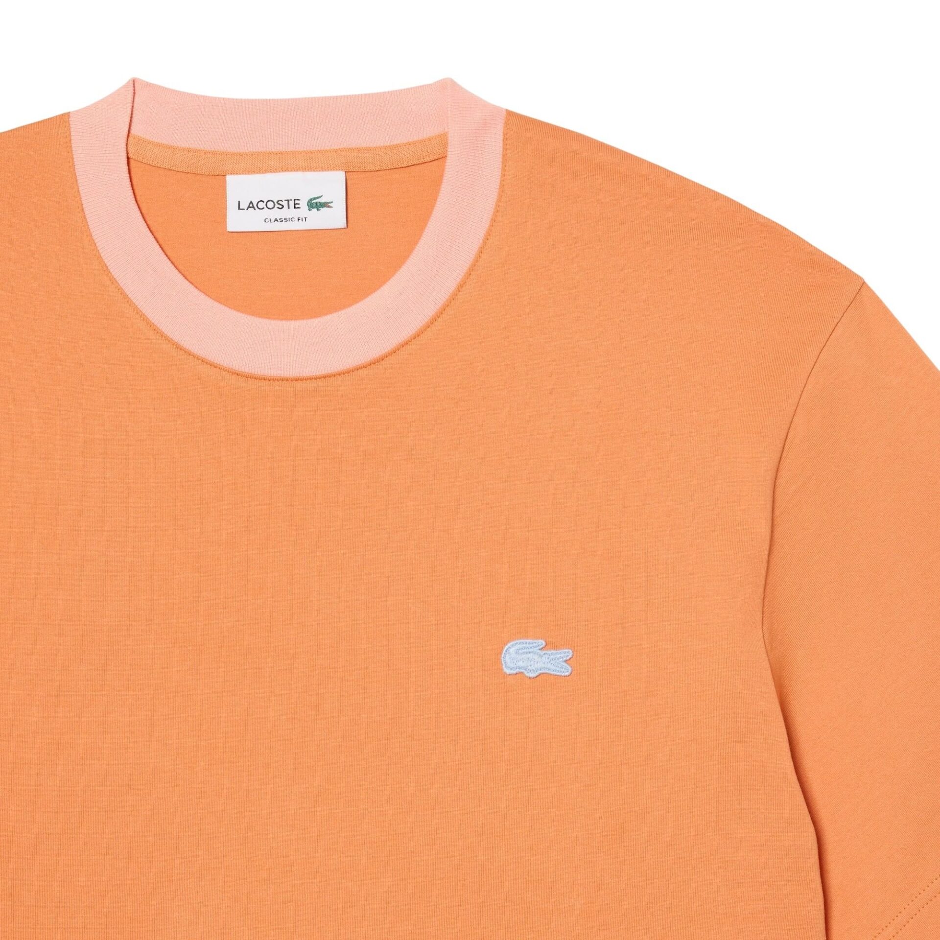 T-skjorte fra Lacoste. Laget i en myk og komfortabel kvalitet. Modellen har en klassisk passform med kontrastfarget, ribbestrikket hals. Diskré brodert krokodillelogo på brystet gir et rent og stilrent uttrykk. En allsidig hverdagsfavoritt.