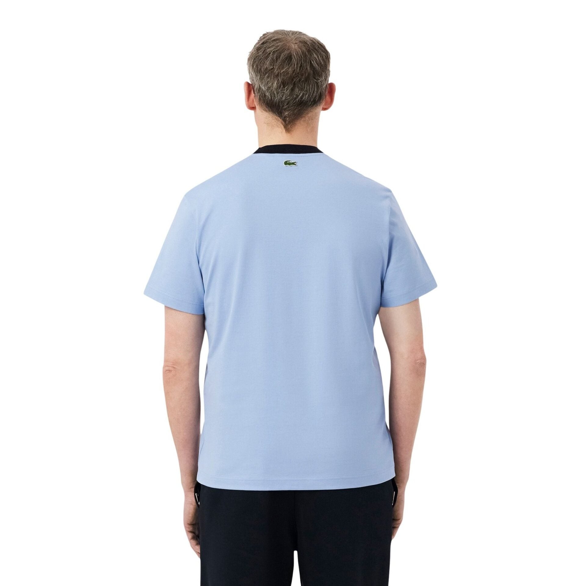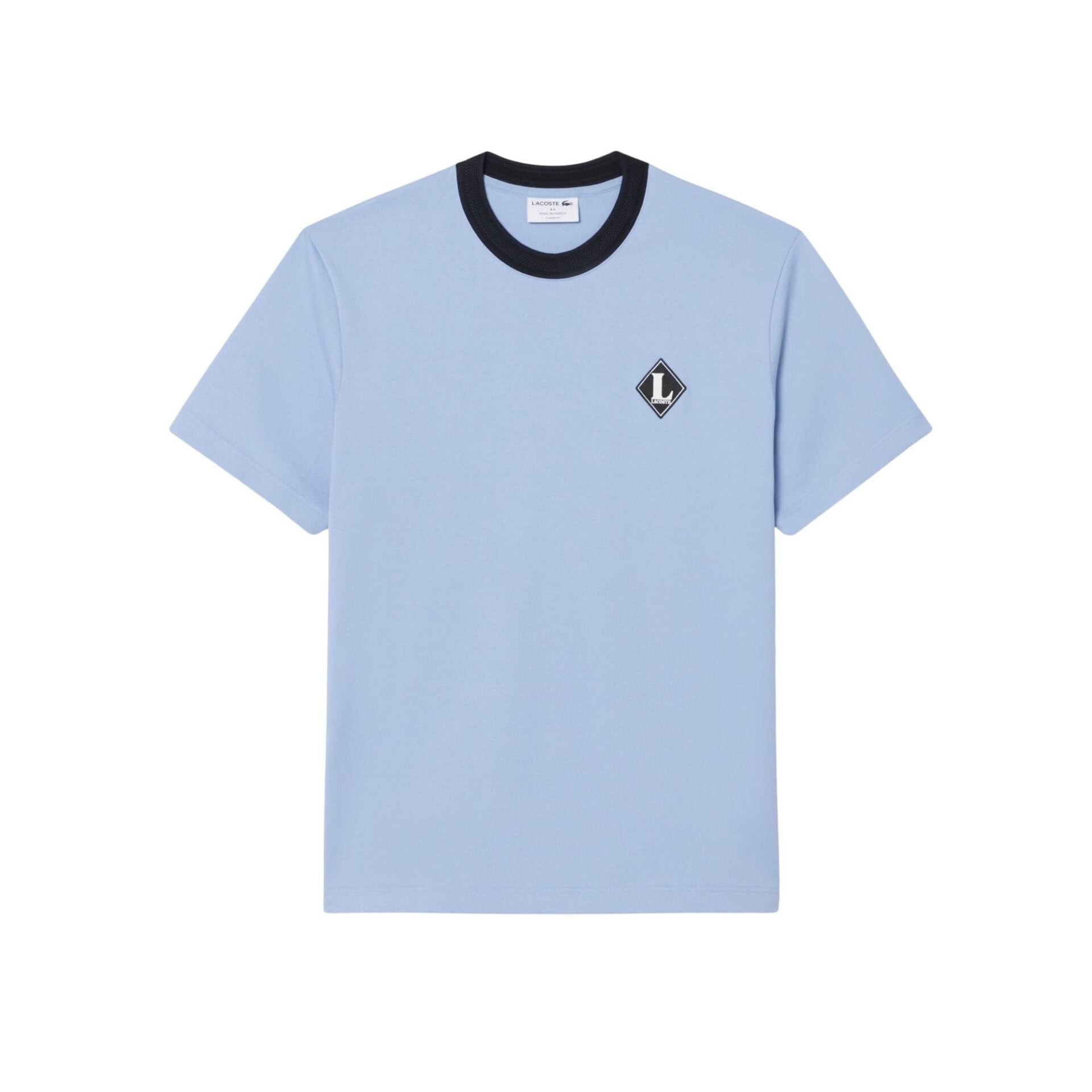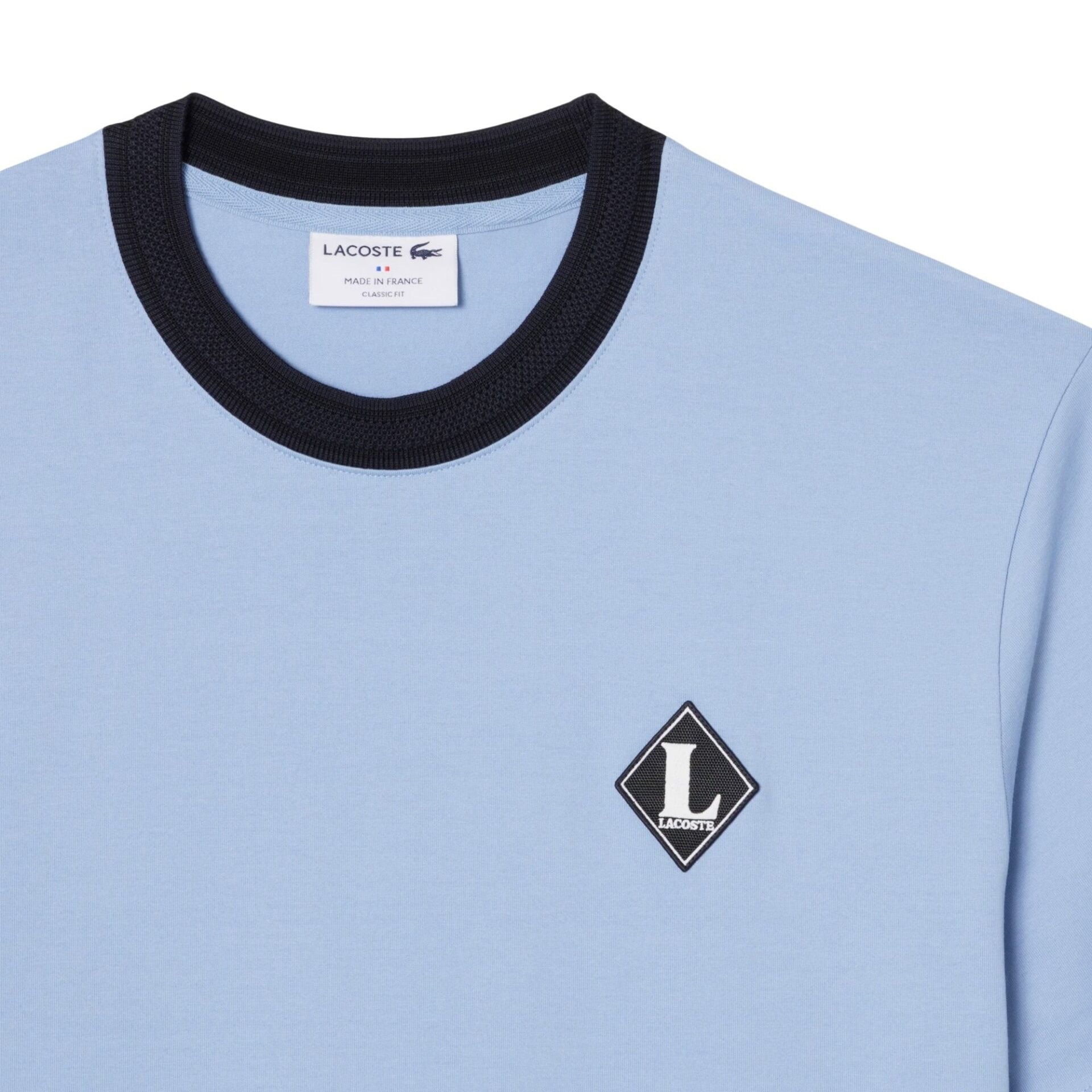 T-skjorte til herre fra Lacoste. Eksklusiv t-skjorte laget i Frankrike av myk og komfortabel bomullsjersey. Den har en retro badge på brystet og en strukturert hals med diskrete striper som gir et gjennomført uttrykk. Avsluttes med den ikoniske, broderte krokodillelogoen.