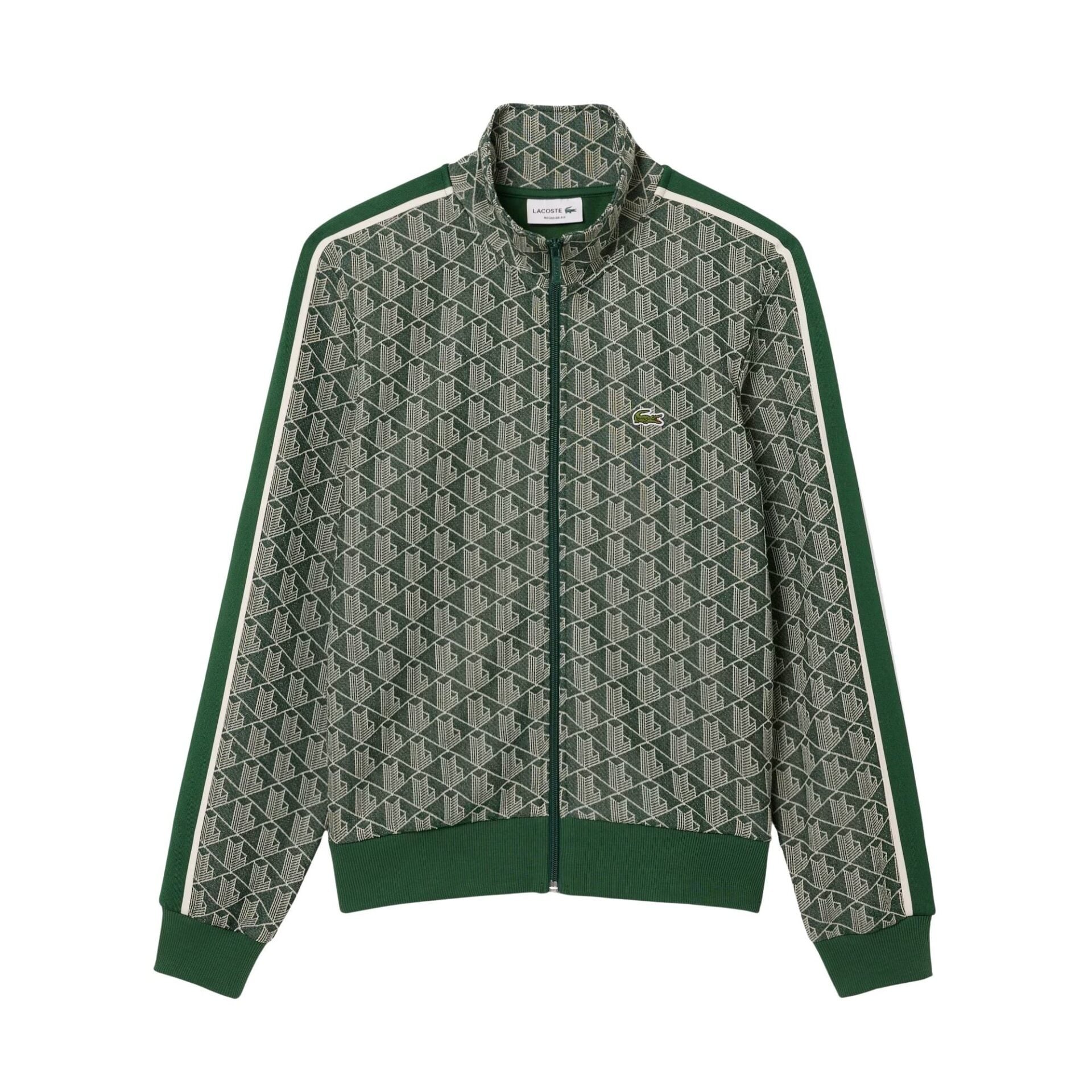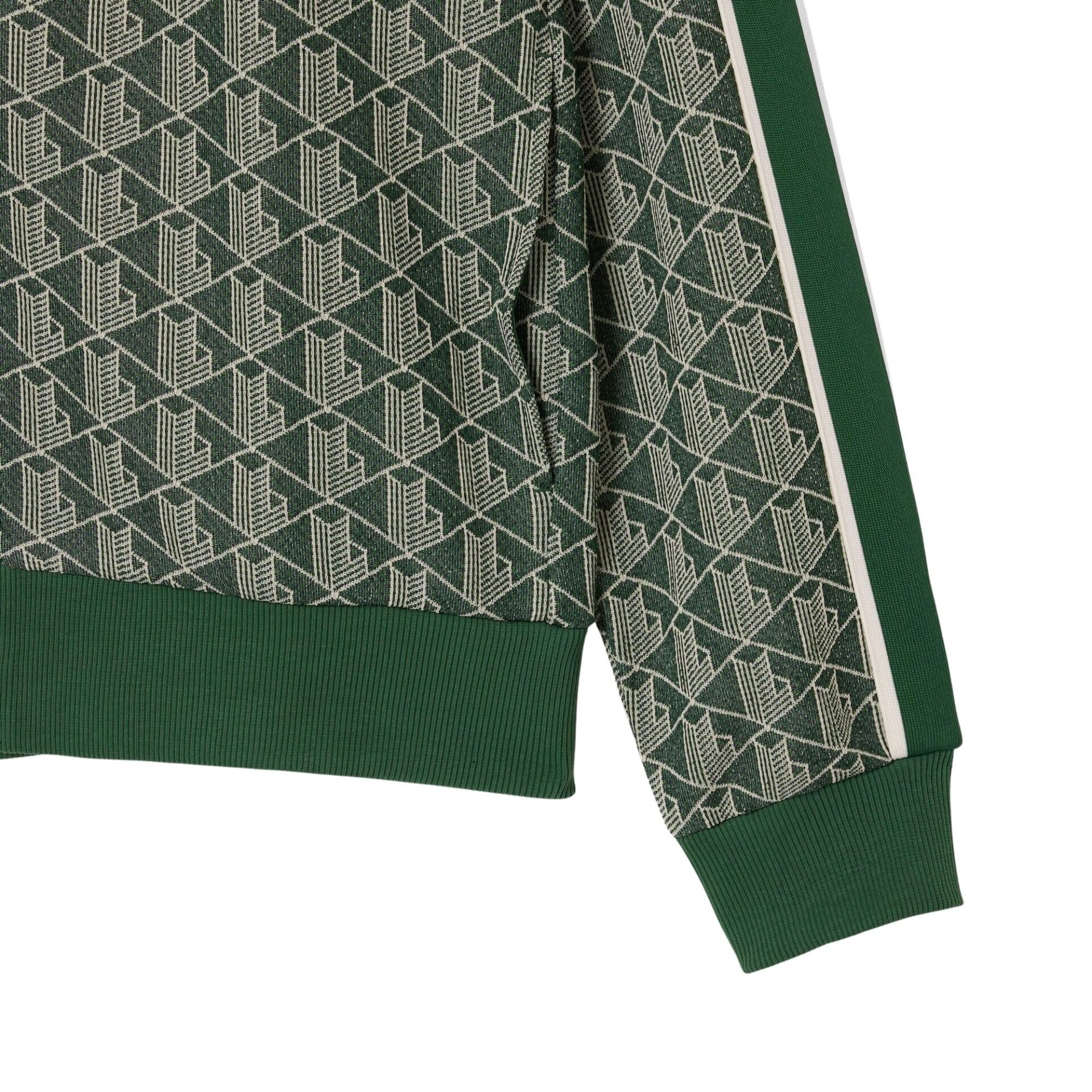 Full-zip til herre fra Lacoste. En sporty jakke inspirert av 70-tallets klassiske tracksuits. Den eksklusive jacquardstrikken med monogram gir en premium følelse og et moderne, stilrent look. Praktiske stikklommer og kontraststriper på ermene setter prikken over i-en.