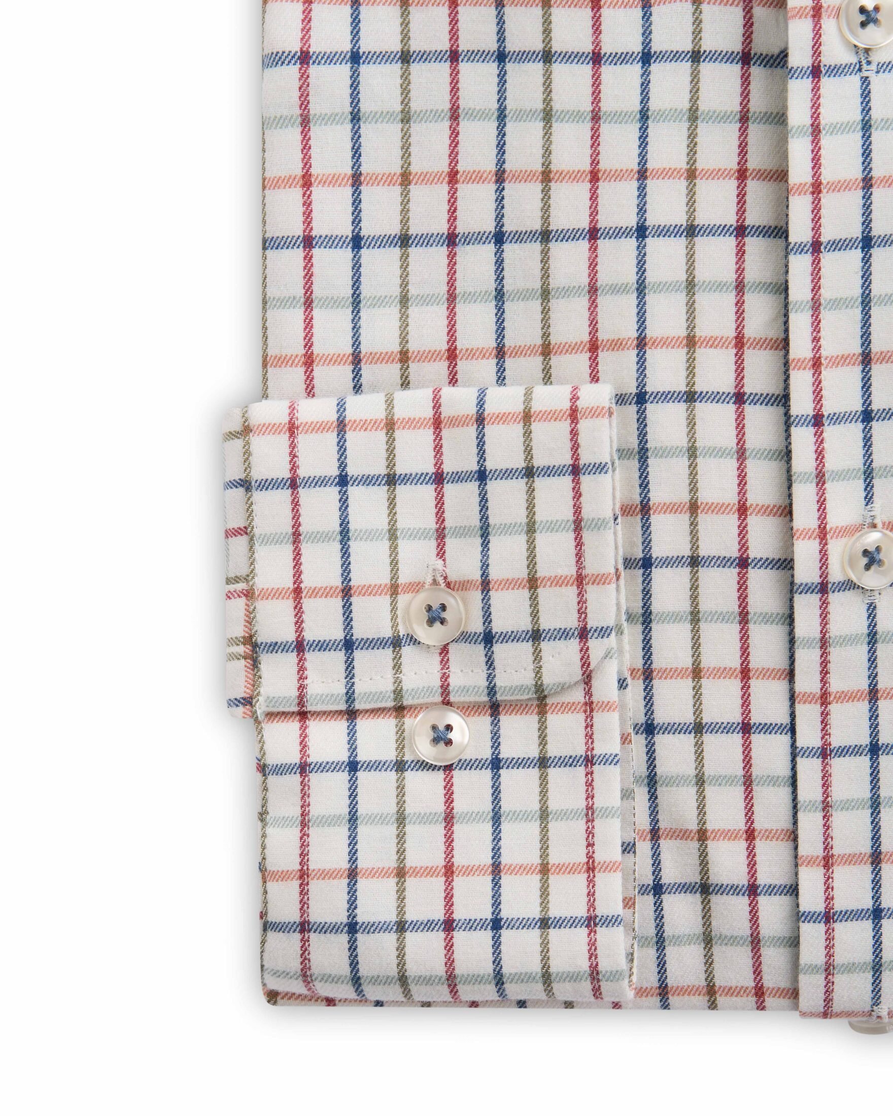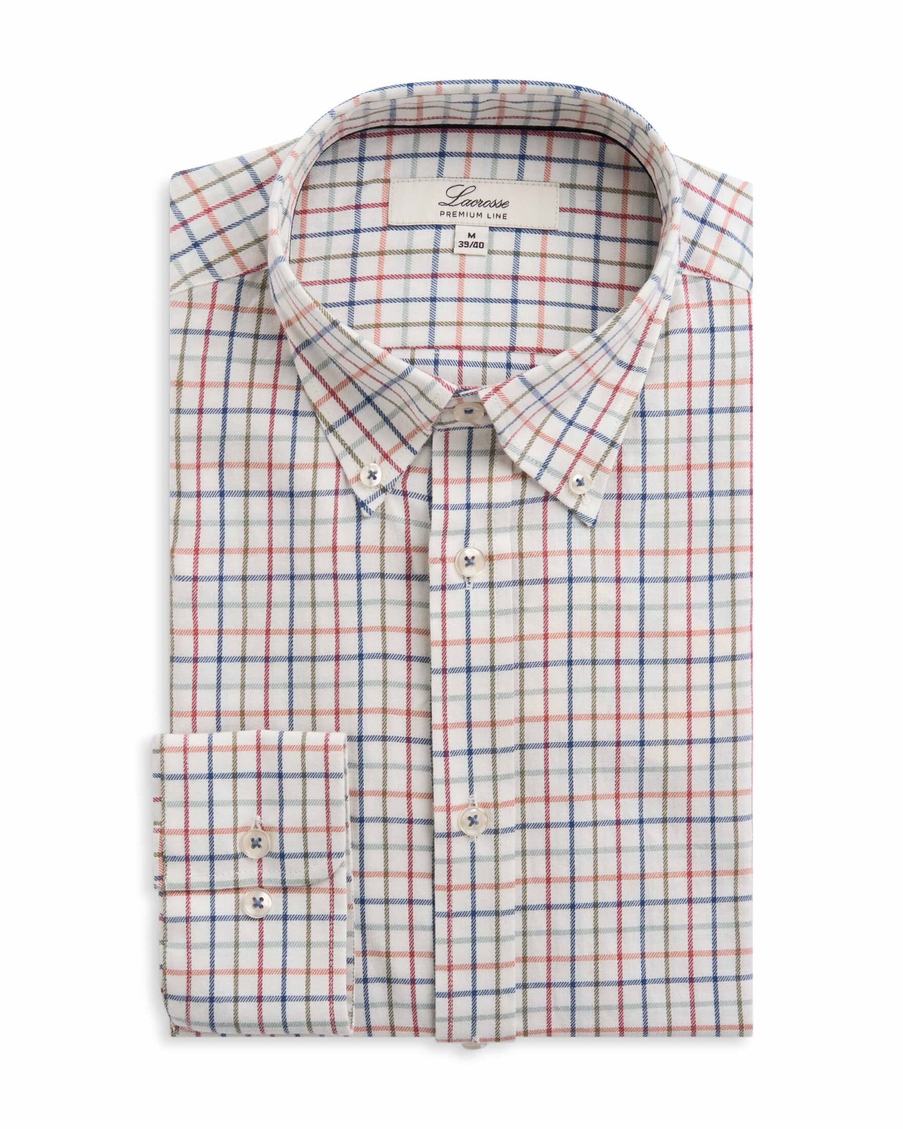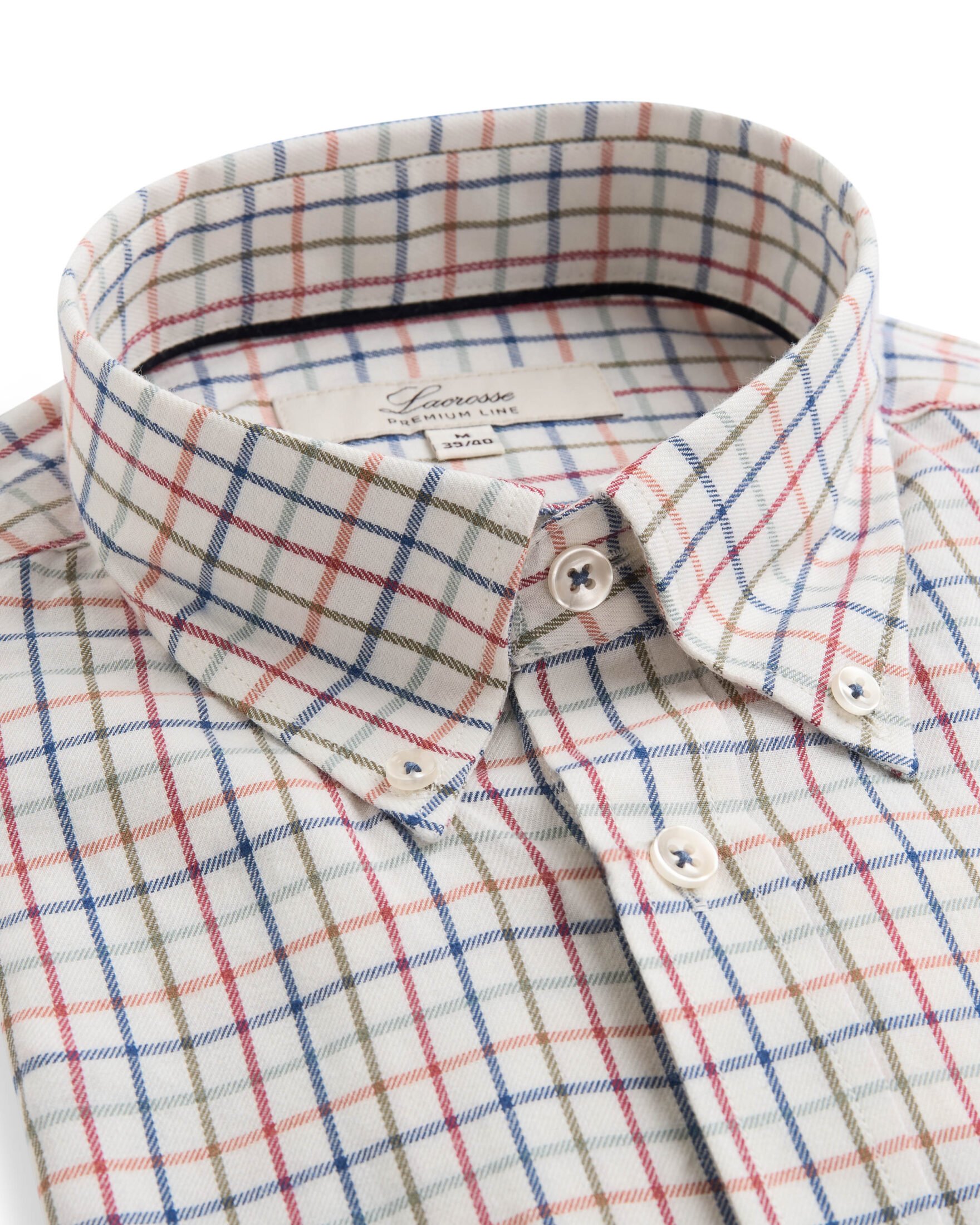 En tidløs flanellskjorte til herre i 100% myk bomull fra Lacrosse. Skjorten har et klassisk rutemønster i rødt, blått og beige, og en skreddersydd passform som gir en flatterende og moderne silhuett. Perfekt kombinasjon av komfort og stil. Ideell både til fritid og hverdagsbruk. Button down-kragen gir et elegant og gjennomført uttrykk.