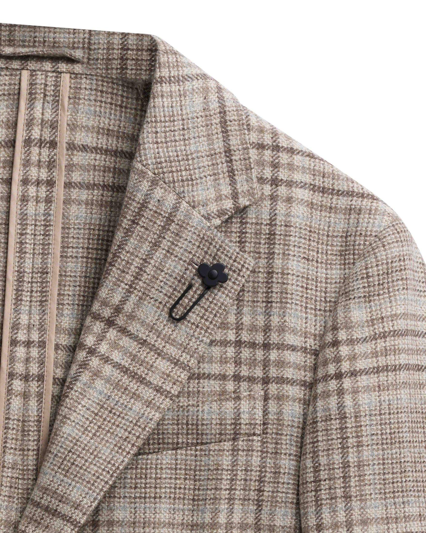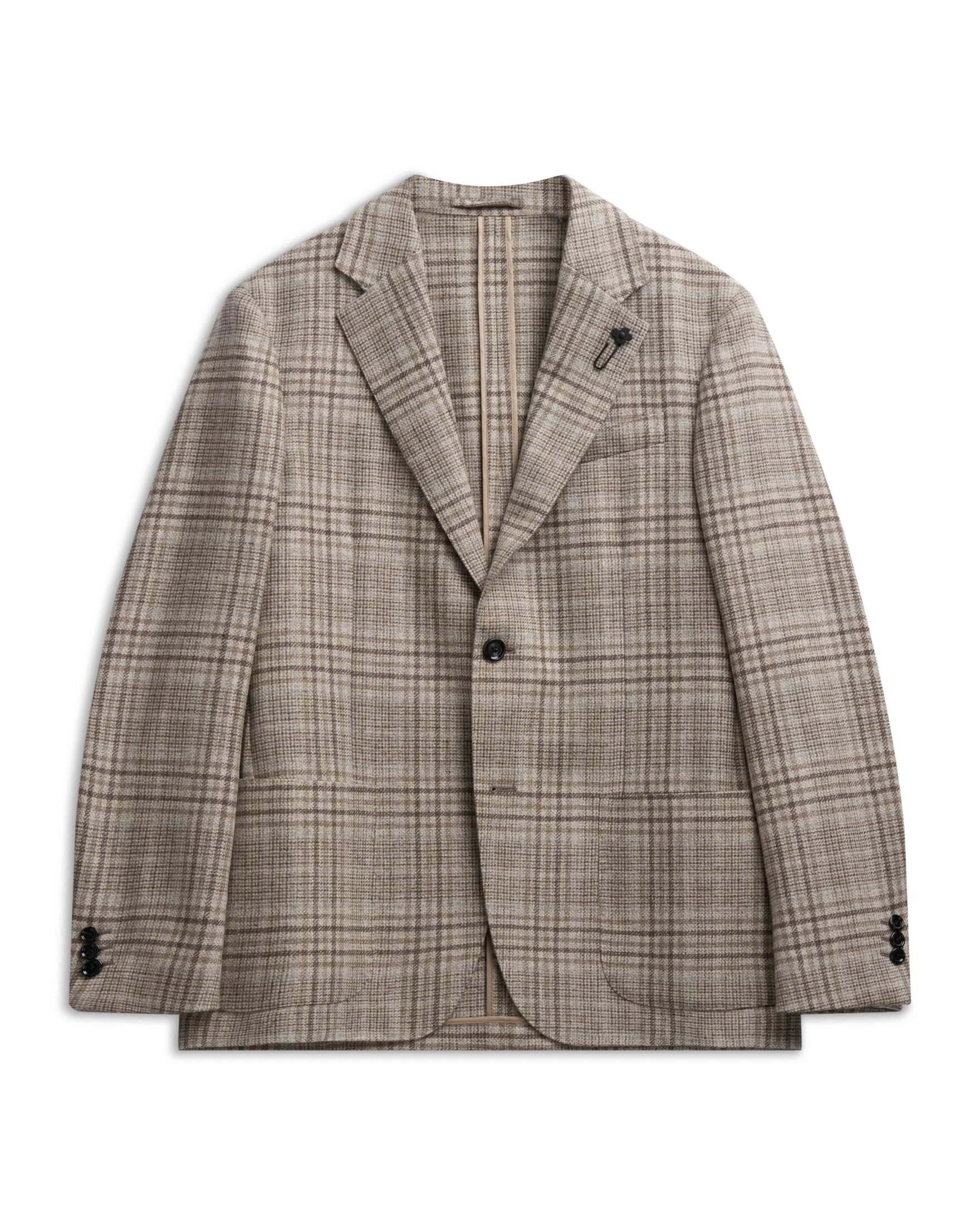 Rutete blazer til herre fra italienske Lardini, laget i en eksklusiv blanding av ull og kasjmir. Det klassiske rutemønsteret i varme beige- og bruntoner tilfører dybde og karakter, samtidig som den myke teksturen understreker plaggets høye kvalitet. Lett konstruert passform med påsydde lommer, notch lapels og Lardinis ikoniske blomsterpin på slaget. Et perfekt valg for deg som ønsker en sofistikert og tidløs stil med italiensk eleganse i hvert detalj.