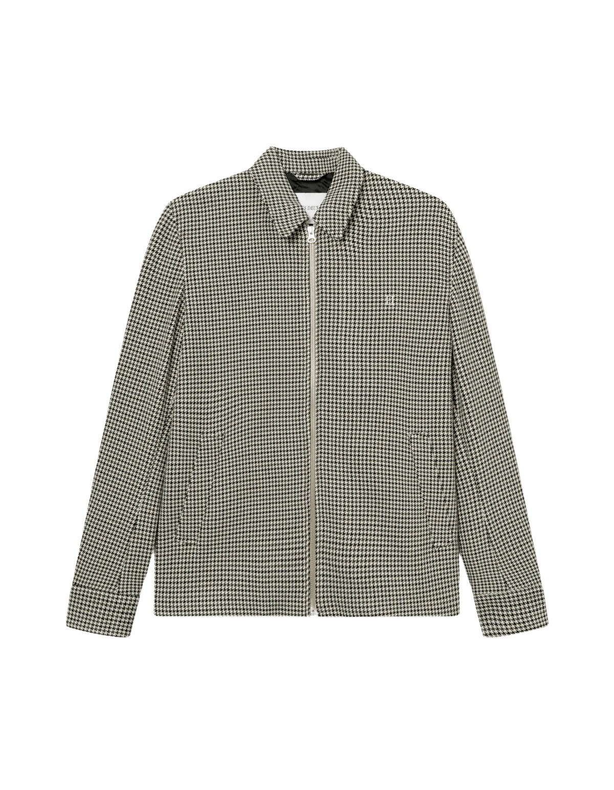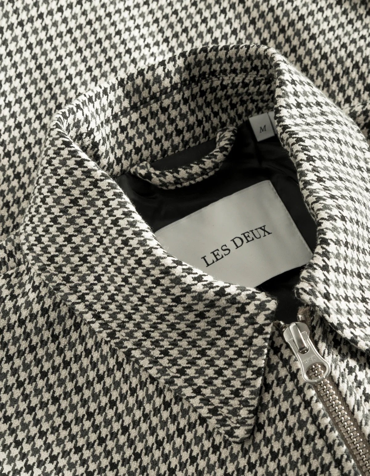 Stilig jakke til herre fra Les Deux. Laget i elastisk polyblend med houndstooth-mønster, skjortekrage og glidelåslukking. En stilig jakke som er fin å bruke til hverdag med en basic t-skjorte under.