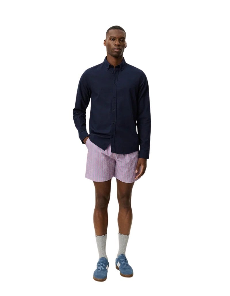Konrad Cotton Linen Shirt fra Les Deux. En lett og behagelig skjorte i en sval bomulls- og linblanding. Den har klassisk button down-krage og en tidløs passform som passer like godt til jobb som til sommerlige anledninger. Style den med chinos eller shorts for en avslappet, men velkledd look.