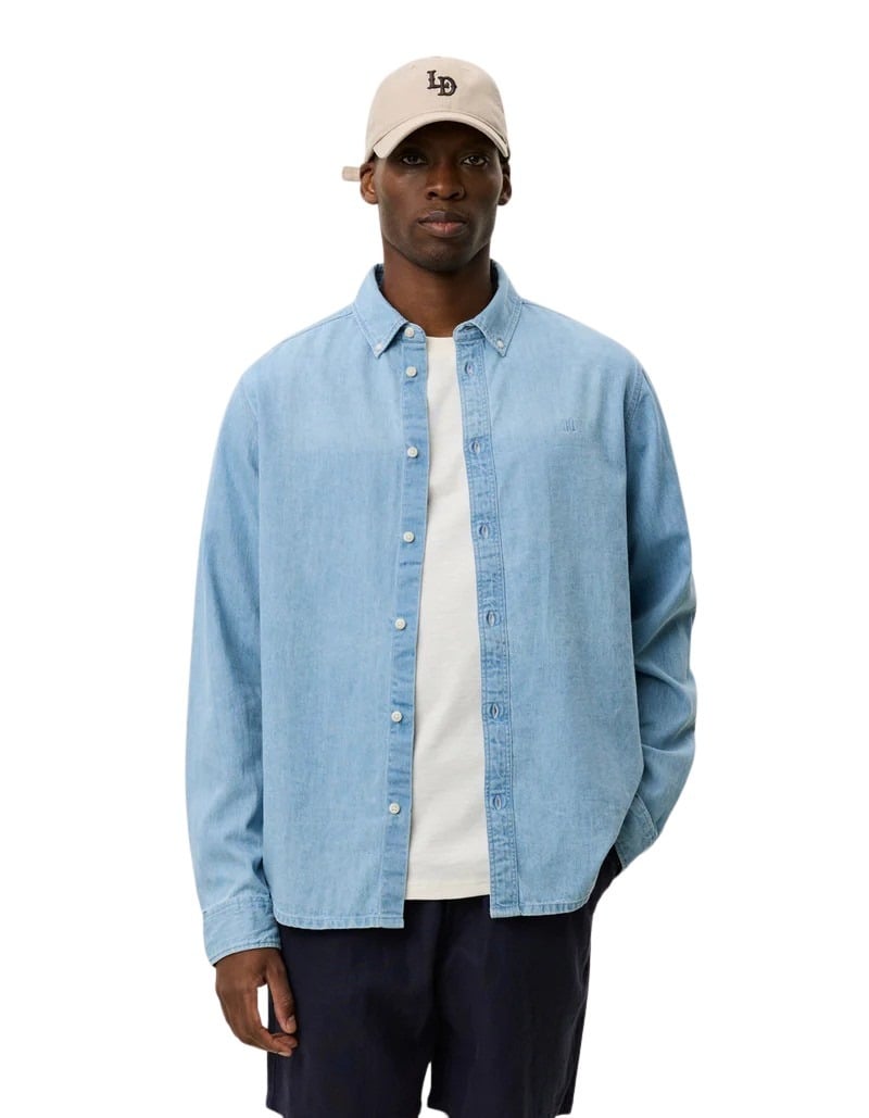 Denimskjorte til herre fra Les Deux. En klassisk denimskjorte med rene linjer og tidløse detaljer. Skjorten har button down-krage, tonalt brodert logo på brystet og tradisjonell skjortekonstruksjon.