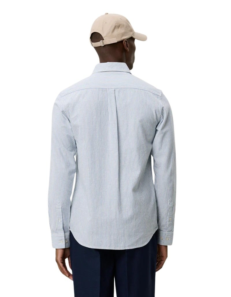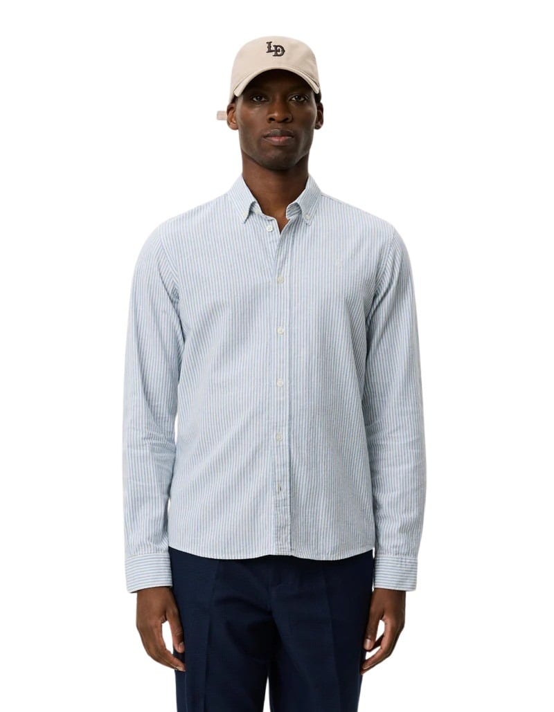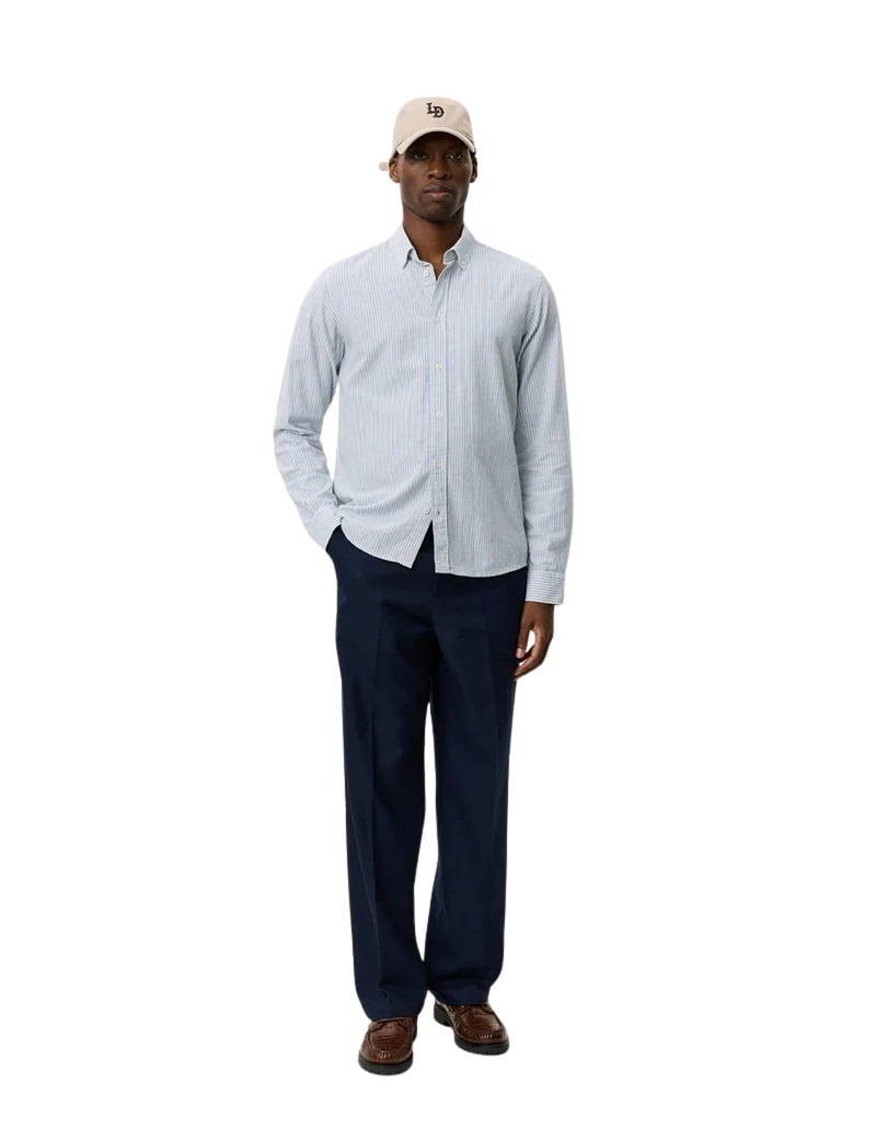 Konrad Stripe Cotton Linen Shirt fra Les Deux. En lett og luftig skjorte i bomulls- og linblanding med klassiske striper. Den har en tidløs passform og knappelukking som gjør den enkel å style både til jobb og sommerlige anledninger. Perfekt til chinos, jeans eller shorts for en avslappet, men velkledd look.