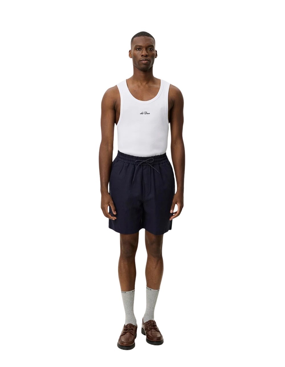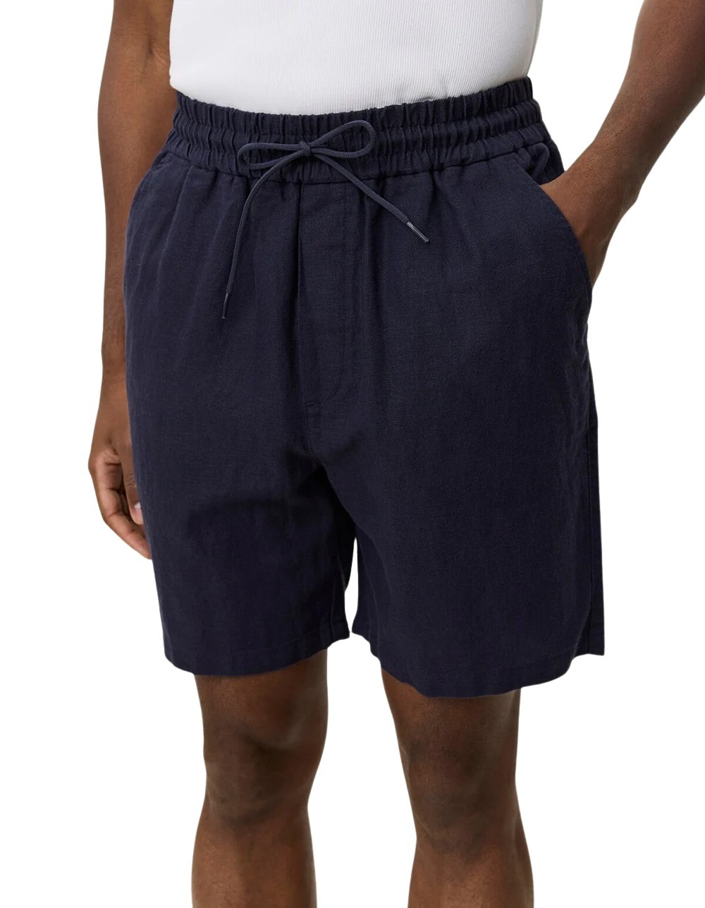 Otto Linen Shorts fra Les Deux. Lette og komfortable shorts med et avslappet, sommerlig uttrykk. De har elastisk midje med snøring og en luftig linblanding som gir god pusteevne på varme dager. Perfekte til både strand og byliv med en enkel og stilren look.