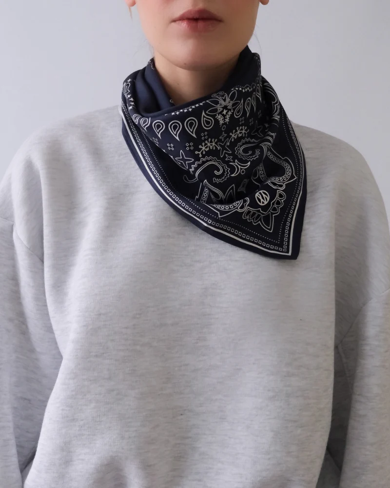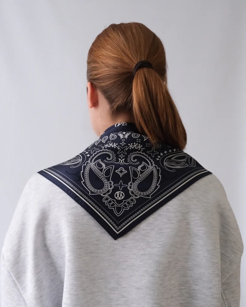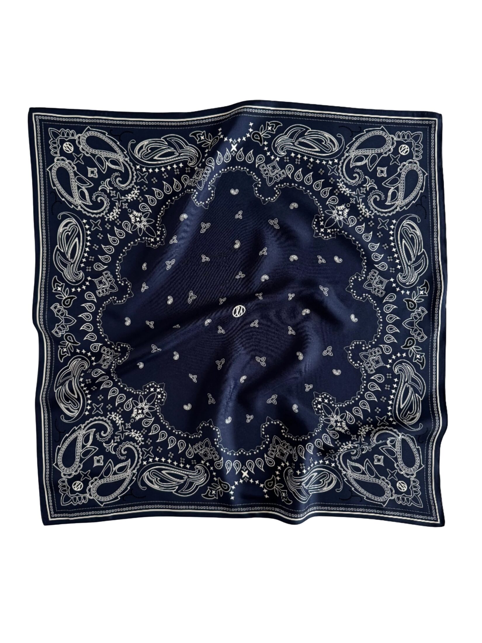 Et elegant silkesjerf fra LeScarf i 100% silke, med et klassisk bandanamønster i elegante mørke toner. Den glatte silkekvaliteten gir et raffinert uttrykk og et lett, luksuriøst fall.