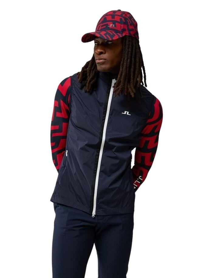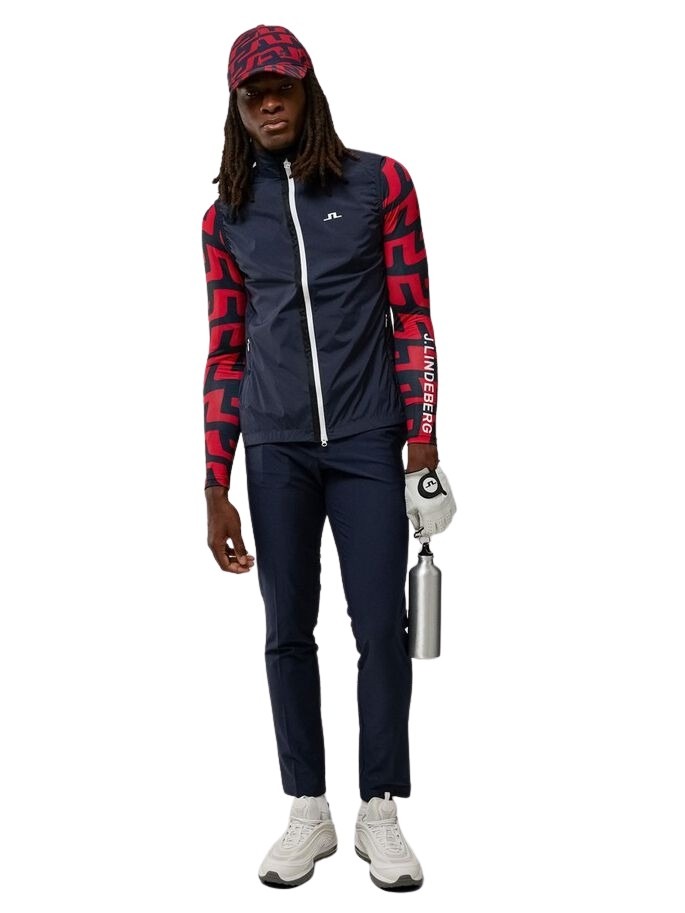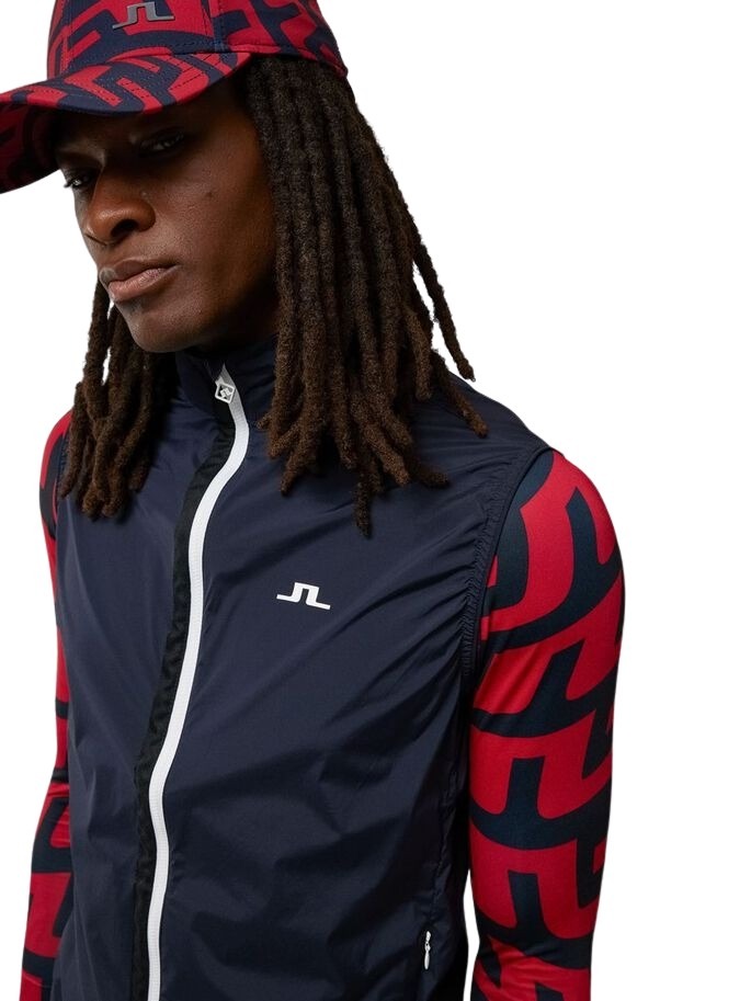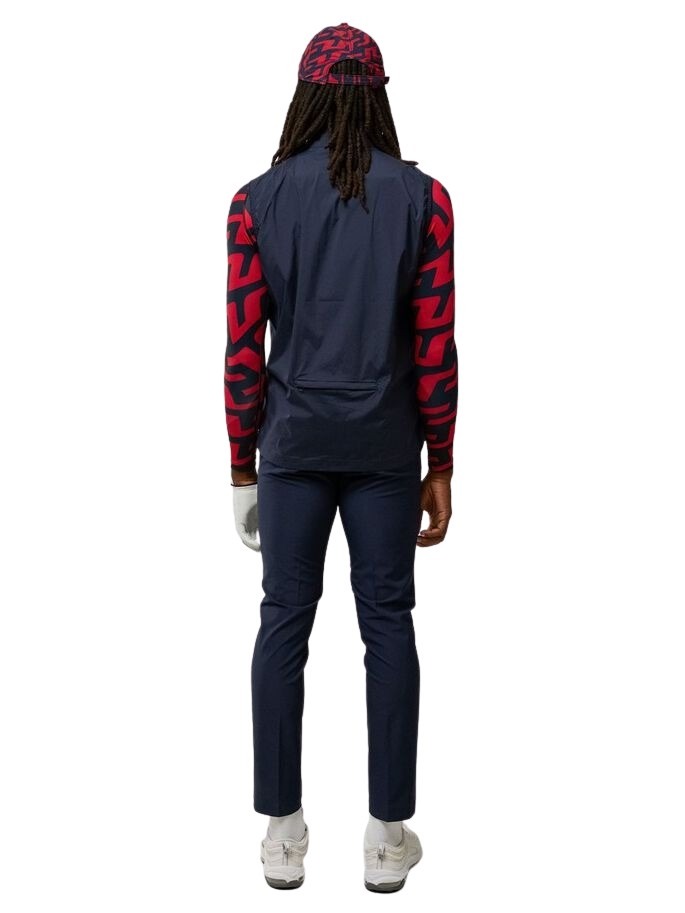 Vest til herre fra Lindeberg Golf. Vesten er laget i et lett og vindtett stoff, og har vannavvisende egenskaper. Den har superstretch-egenskaper og elastisk ermhullkonstruksjon for bevegelsesfrihet, og er laget for høy ytelse. Kan pakkes ned i lommen for enkel oppbevaring.