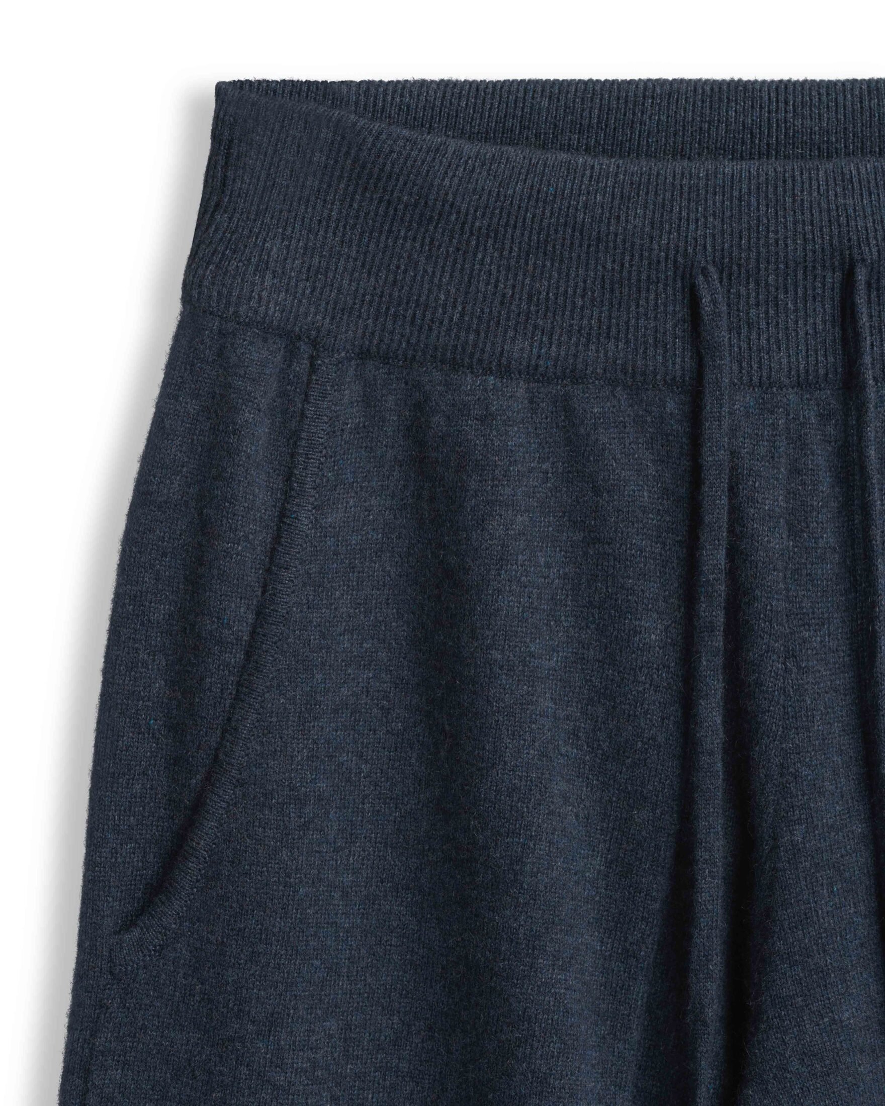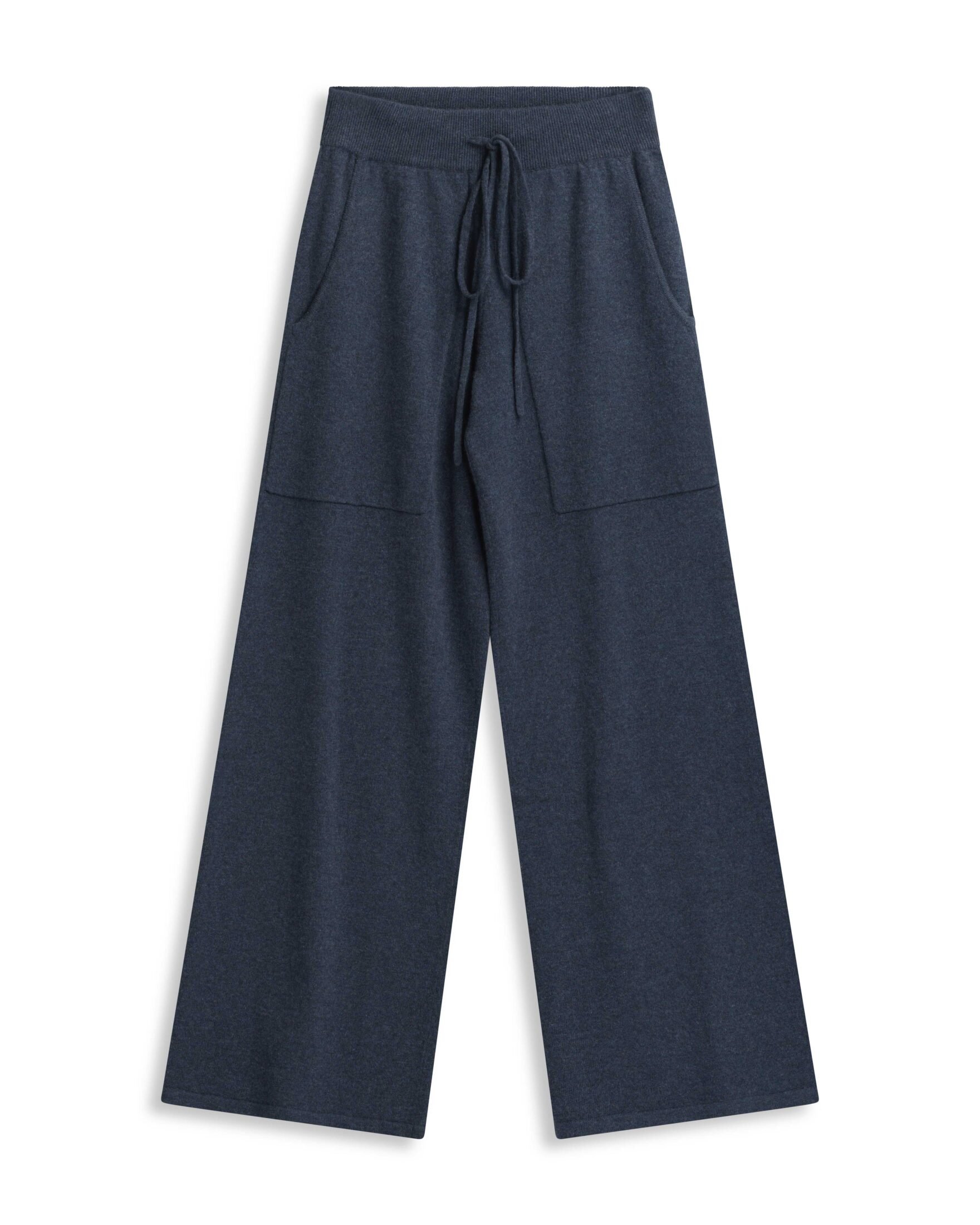 Luksuriøs bukse i myk, ren kasjmir til dame fra Lisa Yang. Modellen har høyt liv med ribbestrikket linning og snøring, samt vide ben for en avslappet og elegant silhuett. Perfekt både til hjemmekos og til en sofistikert hverdagsstil.