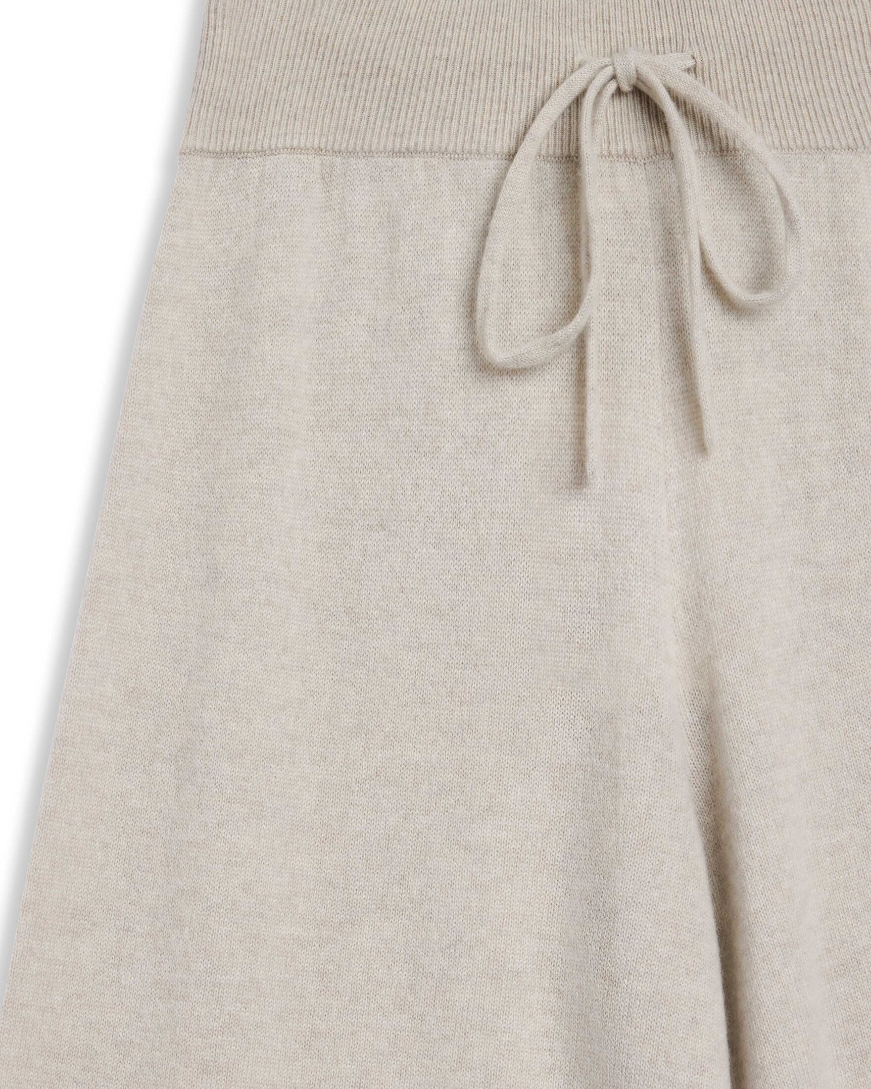 Luksuriøs bukse i myk, ren kasjmir til dame fra Lisa Yang. Modellen har høyt liv med ribbestrikket linning og snøring, samt vide ben for en avslappet og elegant silhuett. Perfekt både til hjemmekos og til en sofistikert hverdagsstil.