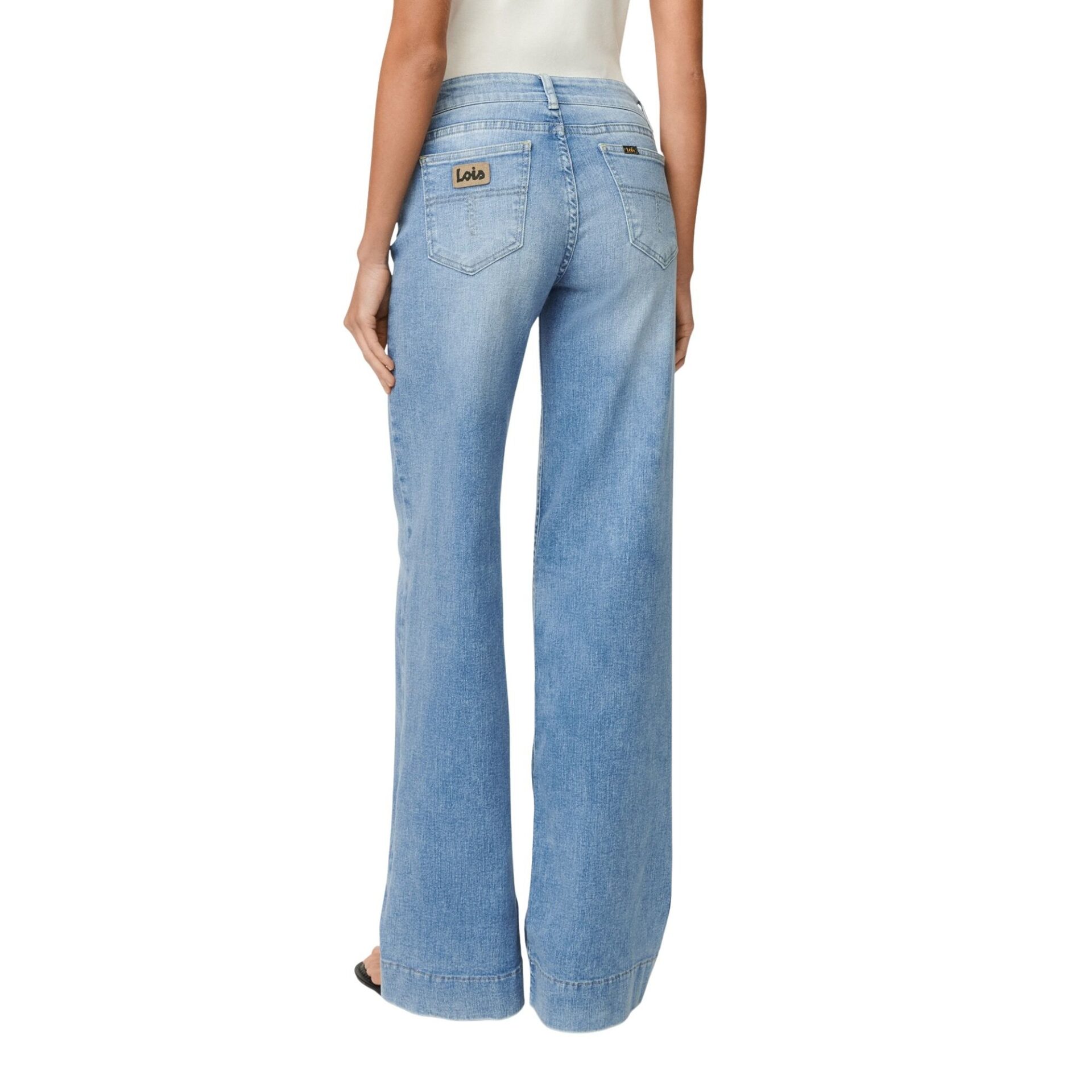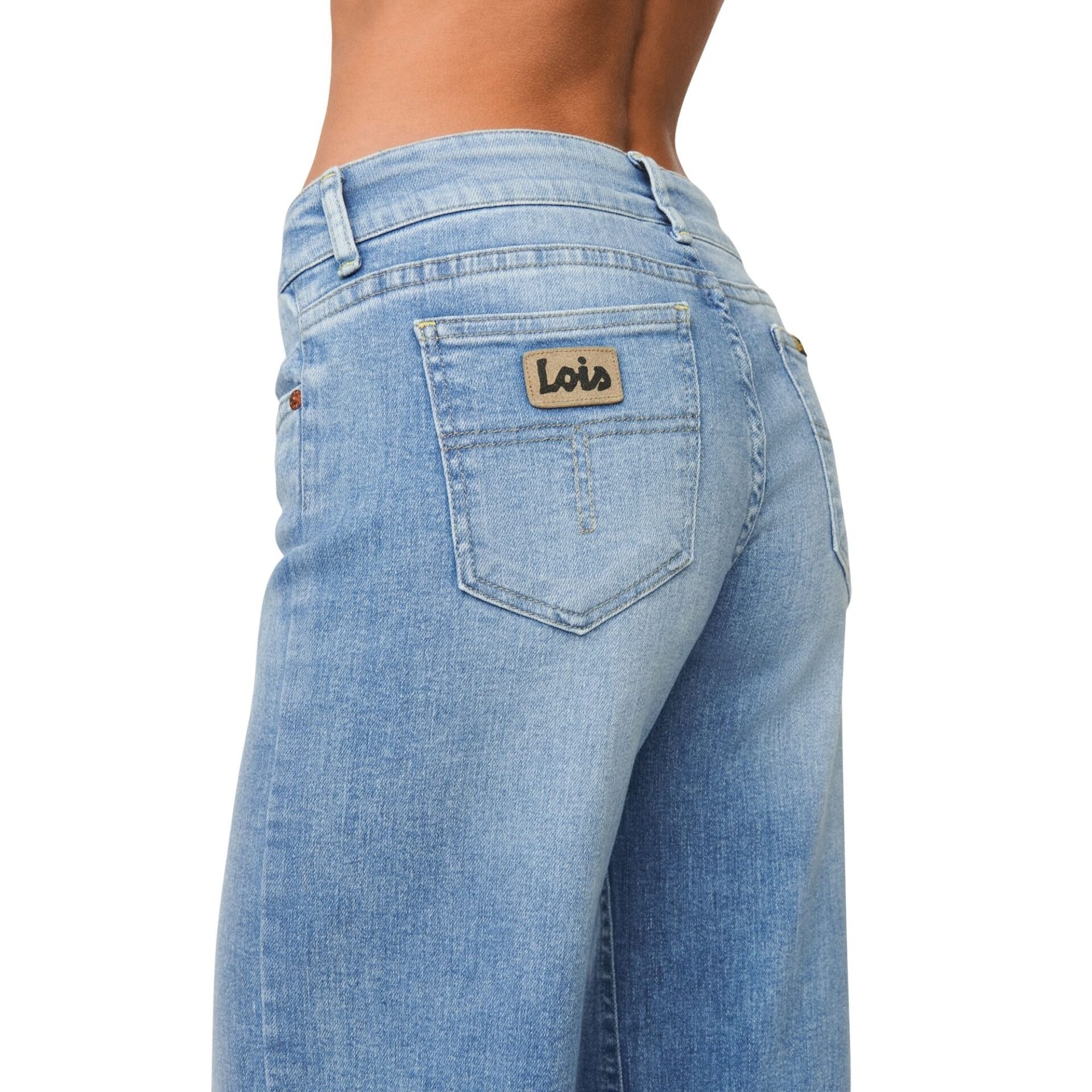 Lorna til dame fra Lois. En flatterende jeans med lav midje og vide ben som gir et elegant og tidløst uttrykk. Den myke denimkvaliteten sitter komfortabelt og faller pent langs bena. Perfekt for både hverdagsbruk og mer pyntede antrekk.