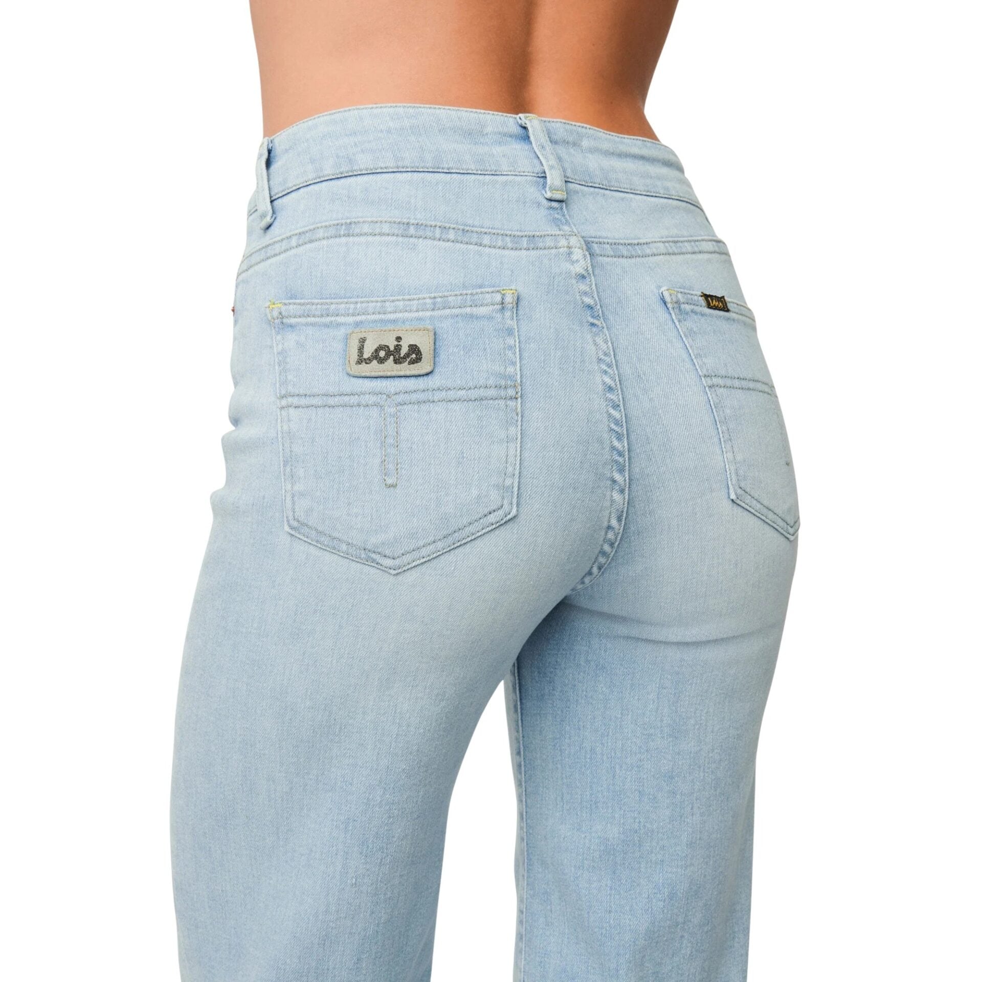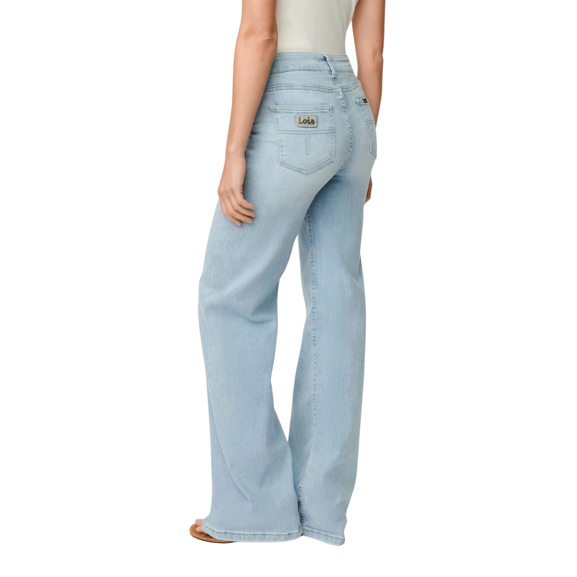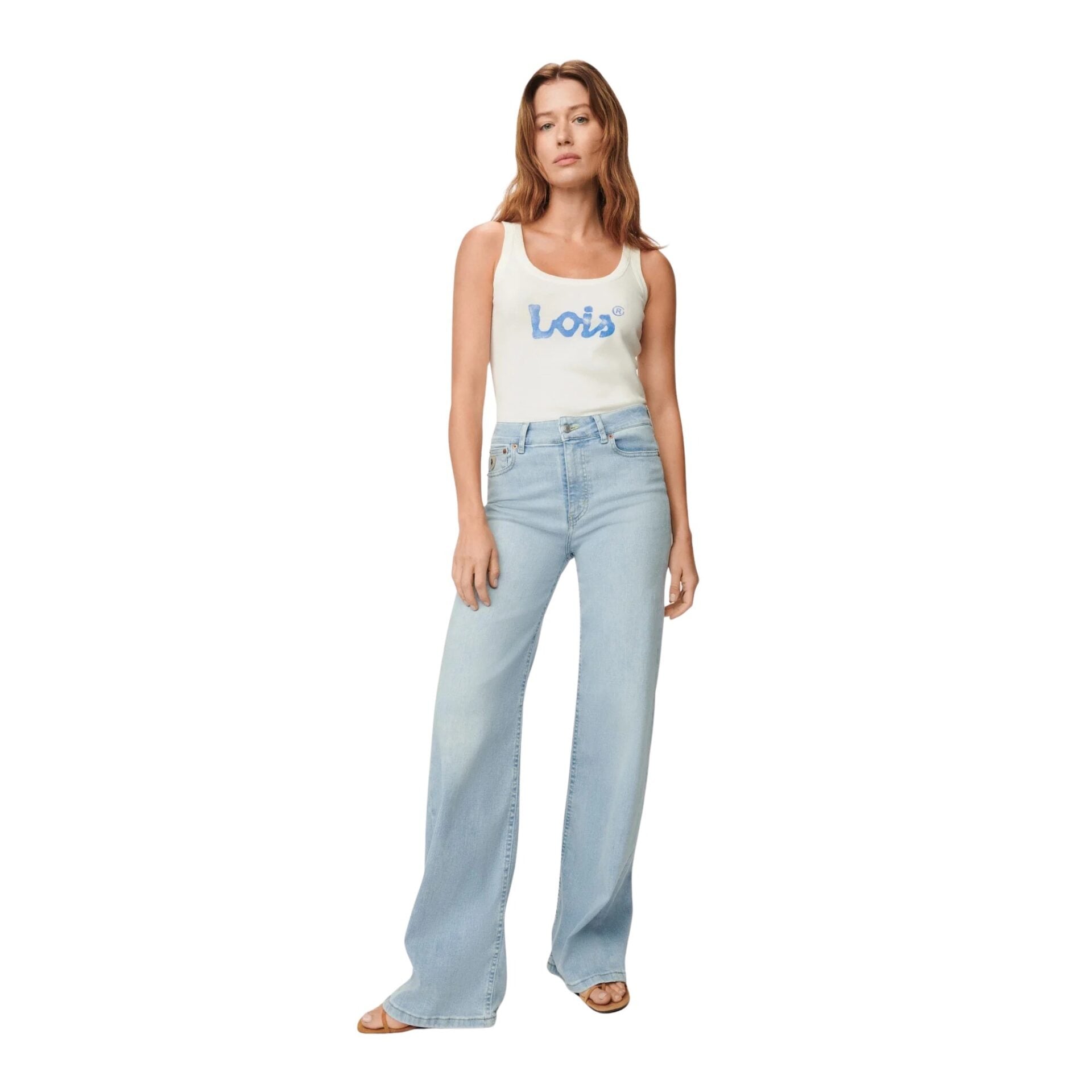 Palazzo til dame fra Lois. En tidløs lys jeans med middels høy midje og rette, vide ben som gir en elegant og avslappet silhuett. Den myke denimkvaliteten sitter flatterende og komfortabelt hele dagen. Perfekt både til hverdags med flate sko og til mer pyntede anledninger med hæler.
