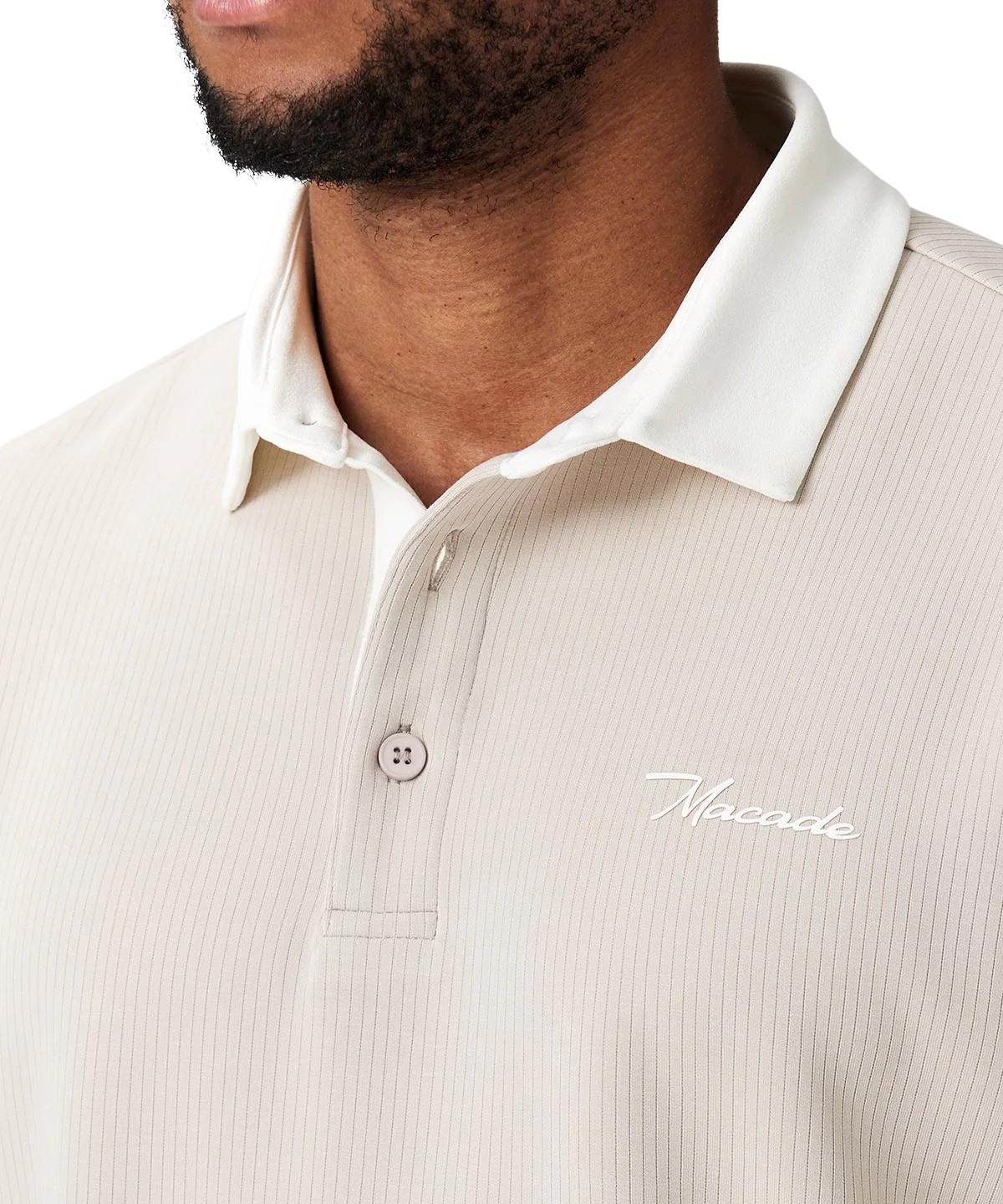 Polo til herre fra Macade i en teknisk og lett kvalitet, perfekt til vårens golfrunder. Pustende og komfortabel med stretch som gir full bevegelsesfrihet fra første utslag til siste putt.