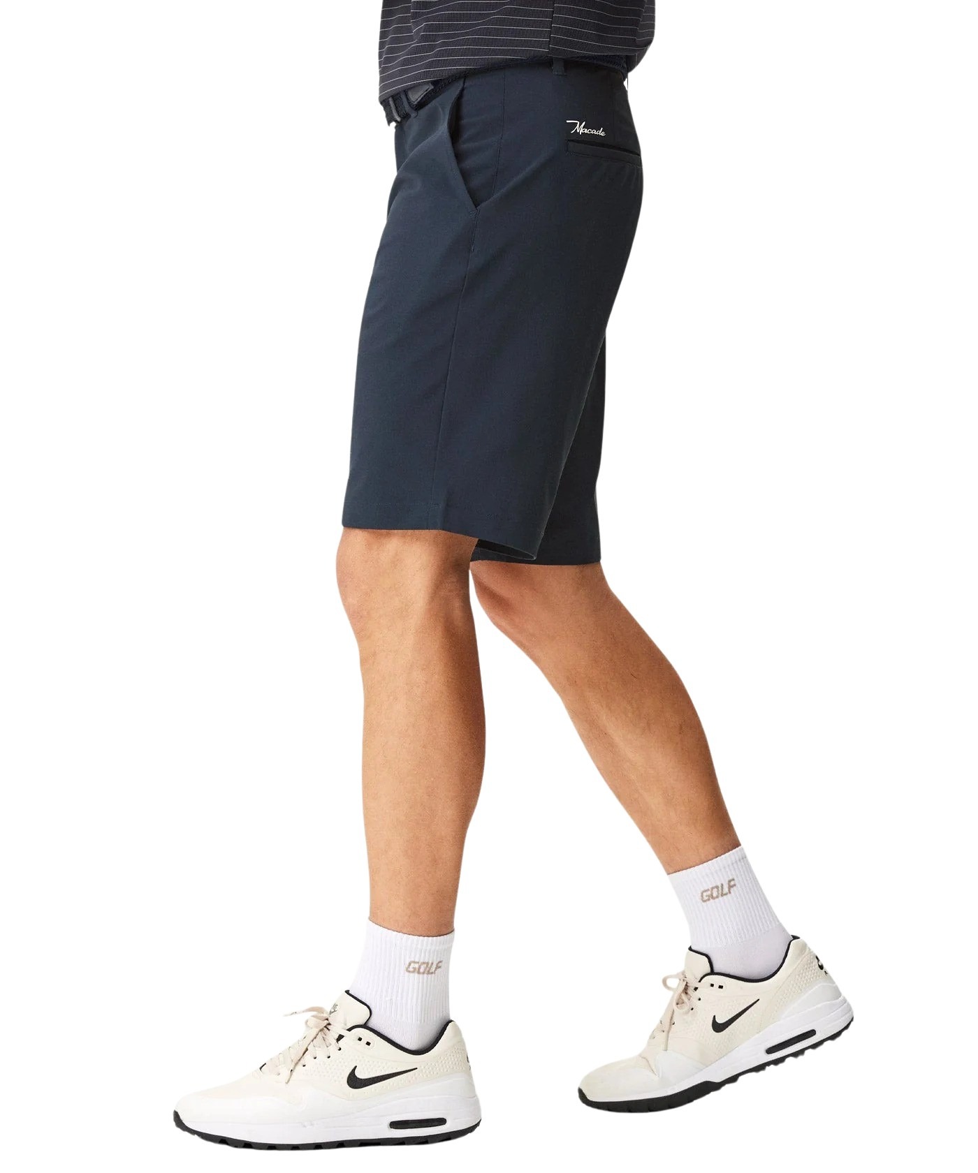 Shorts til herre fra Macade, designet for varme dager på banen. Den lette kvaliteten med fireveis stretch gir full bevegelighet gjennom hele svingen, samtidig som den strukturerte og atletiske silhuetten sørger for et rent og gjennomført uttrykk.