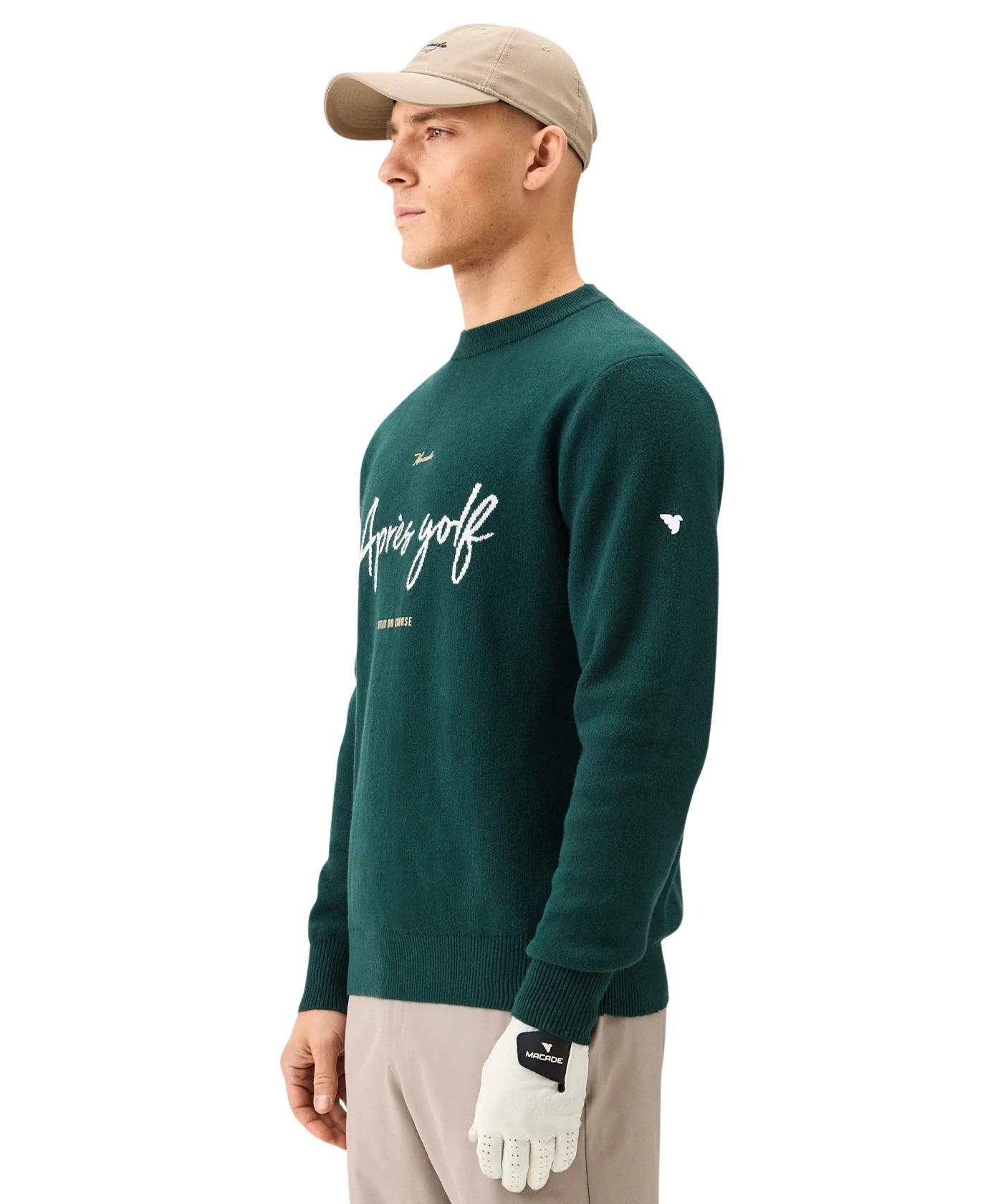Genser til herre fra Macade i en myk og eksklusiv bomullsblanding med kashmir, perfekt til både golfrunden og sosiale anledninger. Strikket med intarsia-detaljer og god stretch for optimal bevegelighet.