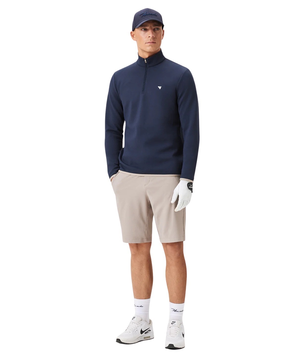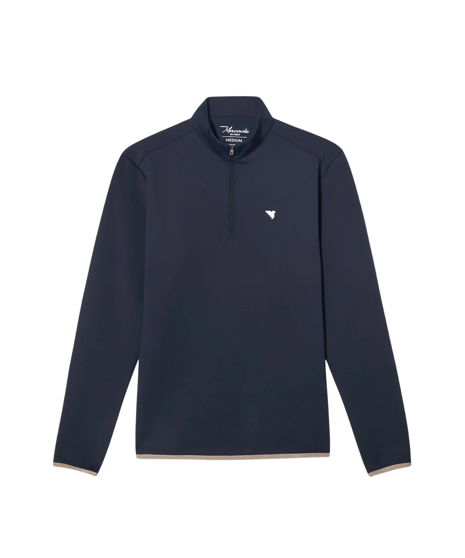 Half-zip til herre fra Macade. En signaturmodell designet for kjøligere dager på banen. Therma Quarter Zip kombinerer varme uten unødvendig tyngde med en ren, moderne silhuett og fleksibel stretch. Perfekt for tidlige morgener og overgangssesonger hvor lag-på-lag er nøkkelen.