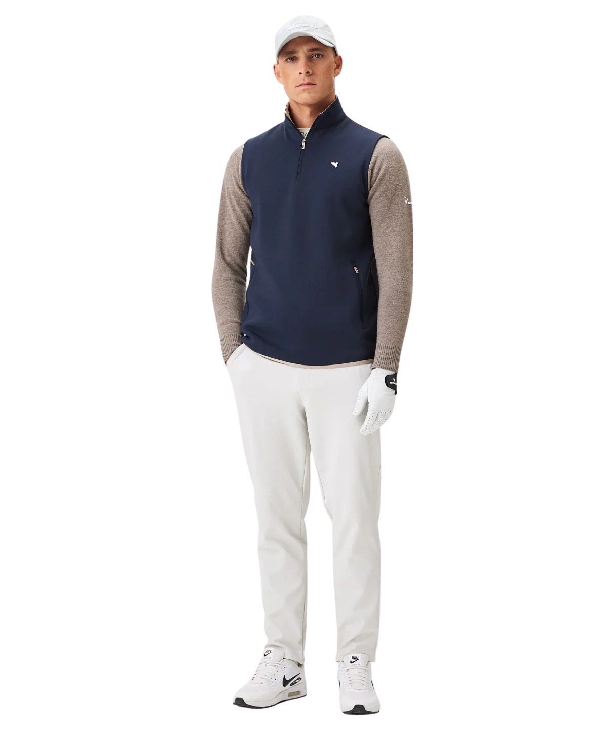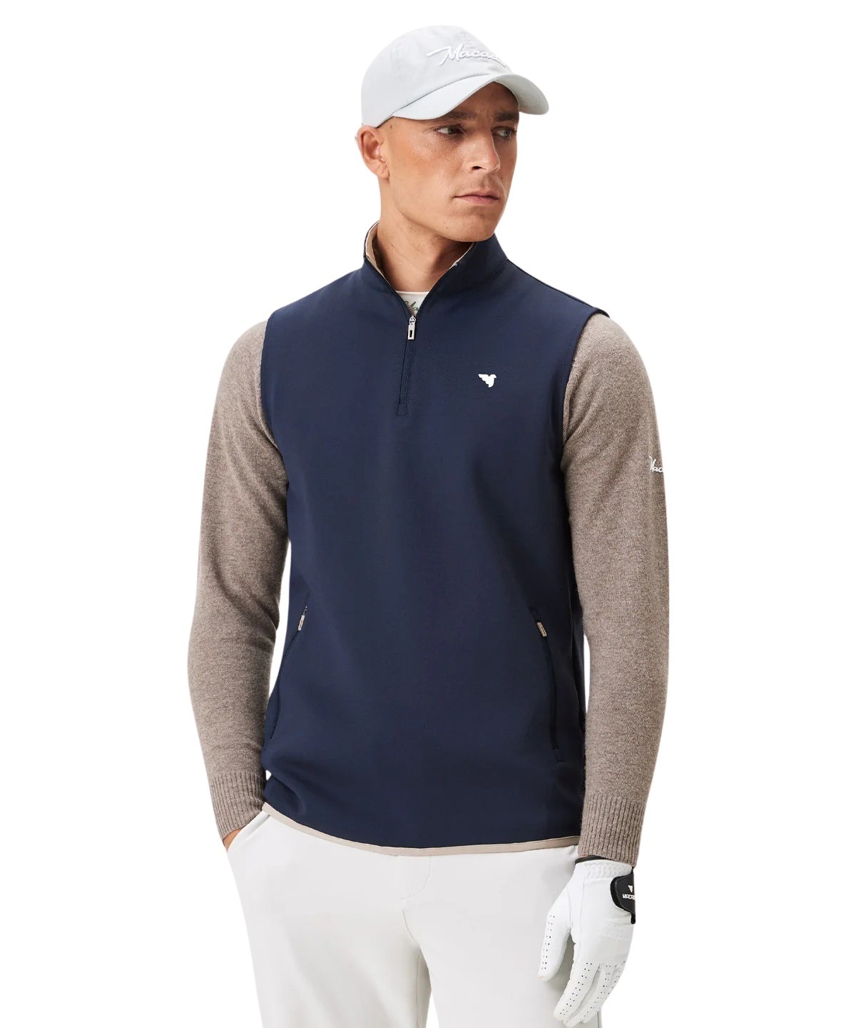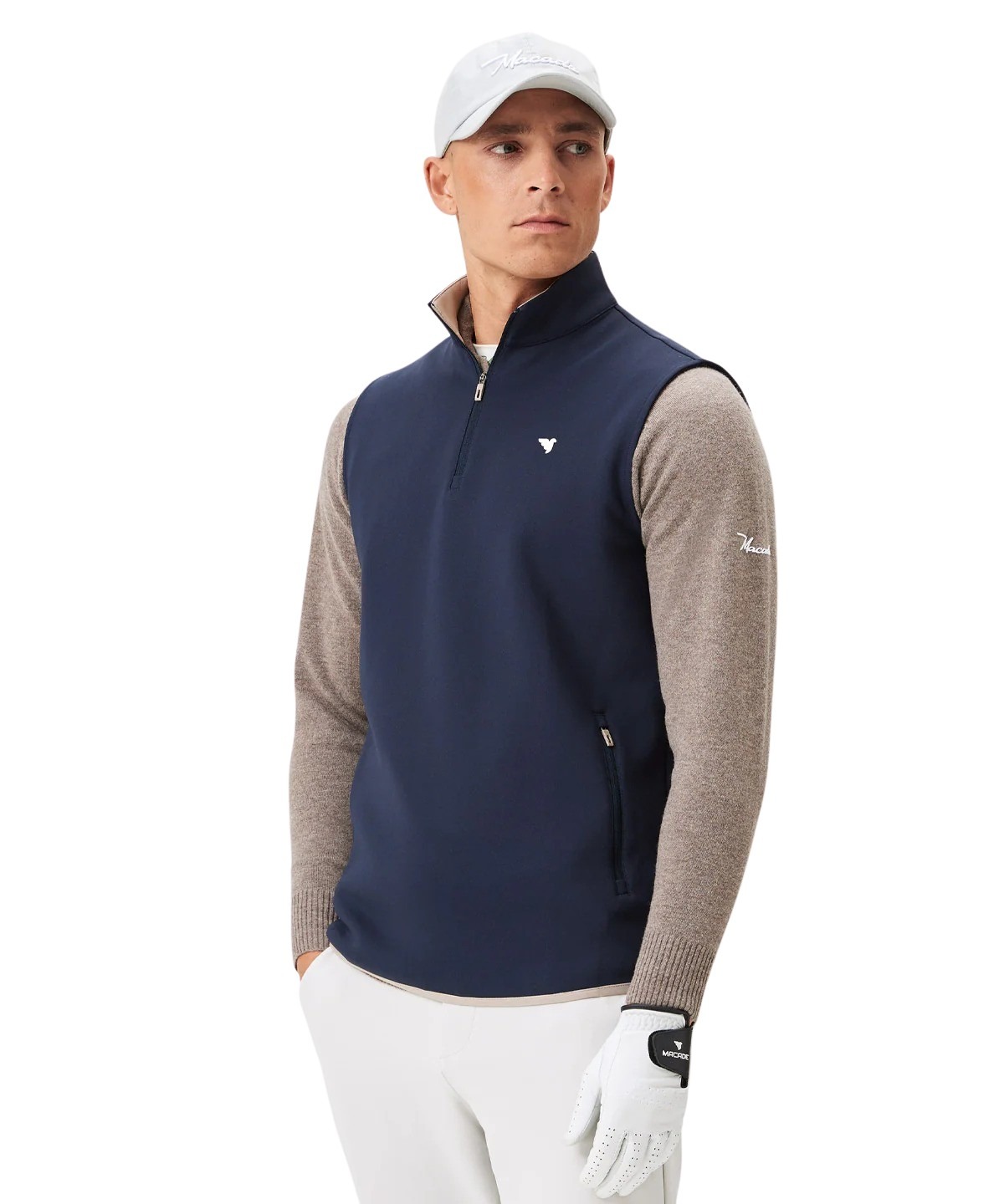 Vest til herre fra Macade, designet som et allsidig lag-på-lag-plagg for skiftende forhold. Den isolerer uten å føles tung og gir en ren, moderne silhuett som fungerer like godt på kjølige morgener som gjennom hele runden. Et funksjonelt og stilrent valg til golfgarderoben.