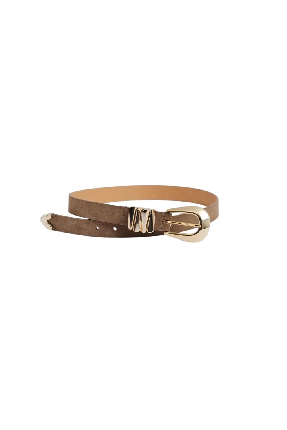 Elegant belte i semsket skinn til dame fra Malina med eksklusive gulldetaljer. Azelia Belt har et tidløst design som tilfører antrekket det lille ekstra. Perfekt til å markere midjen over kjoler, jakker eller bukser. Et klassisk tilbehør som gir et sofistikert preg til enhver stil.