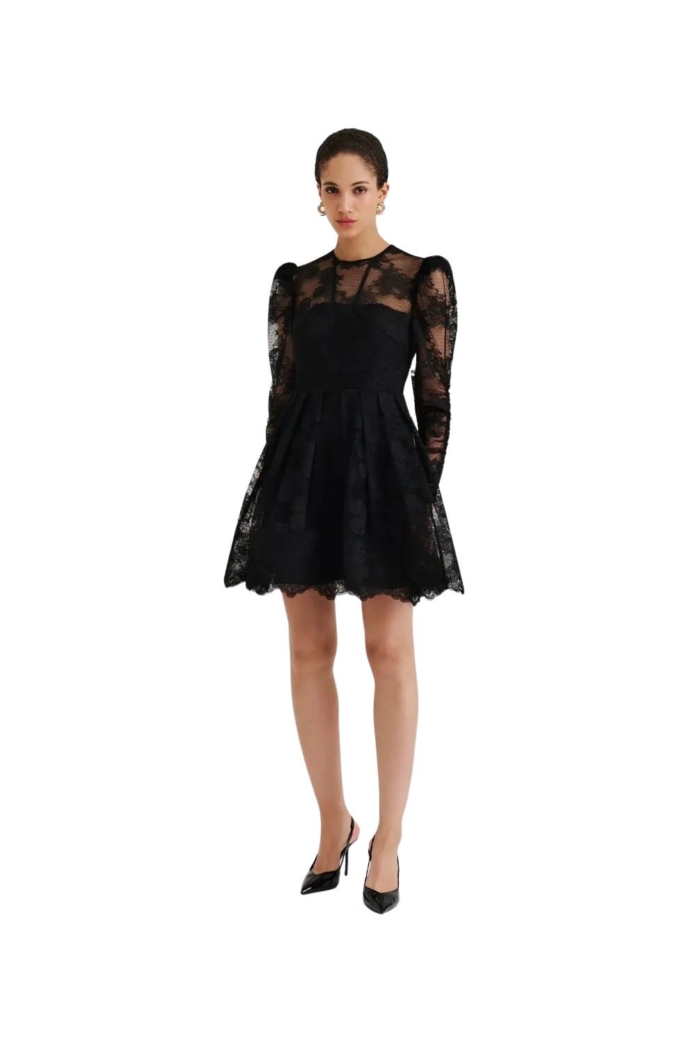 En elegant blondekjole til dame fra Malina som kombinerer klassisk femininitet med moderne snitt. Leoni Mini Dress har lange ermer, delikat blondestoff og en flatterende A-formet skjørt som gir en romantisk silhuett. Perfekt til festlige anledninger, middager eller julebord.