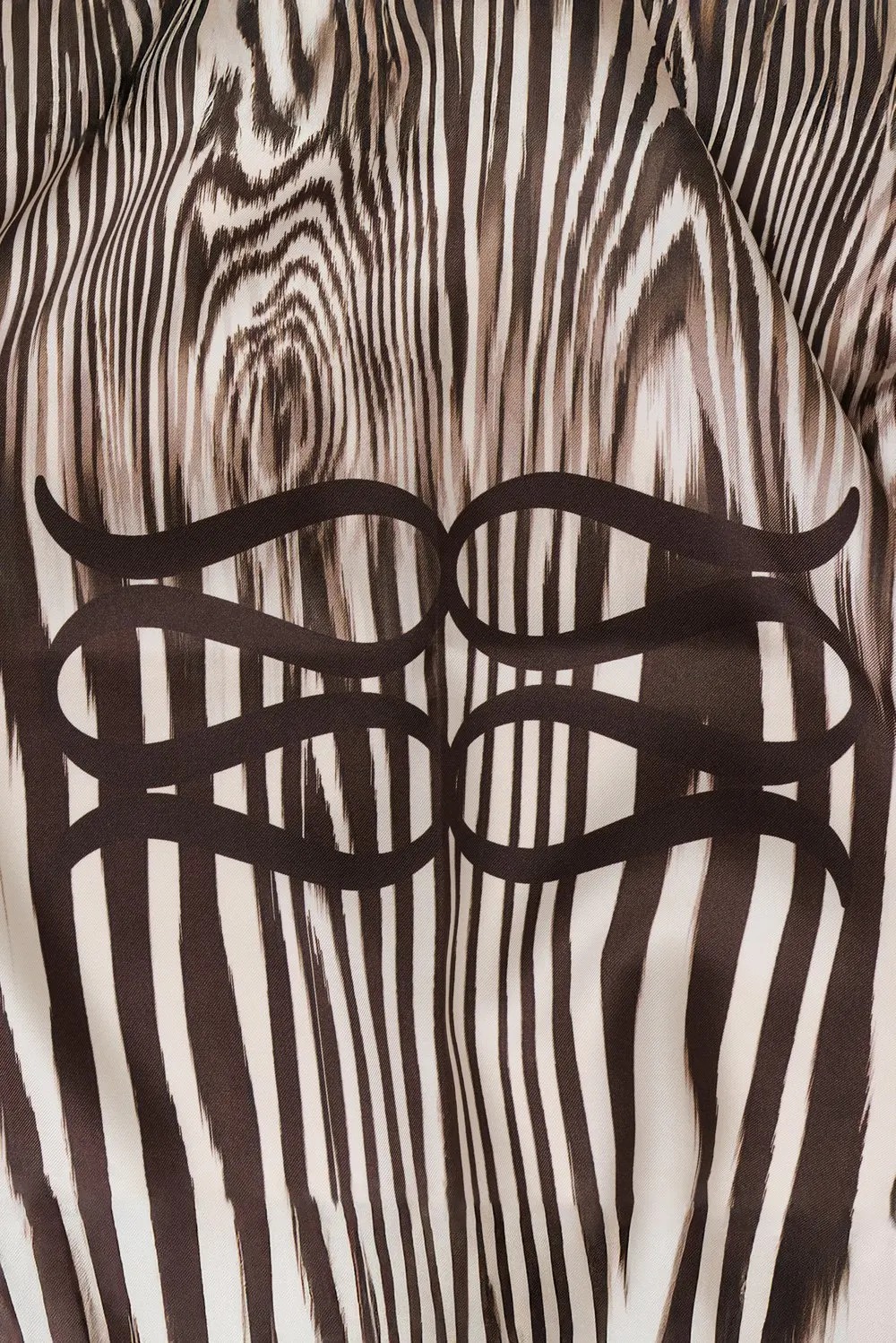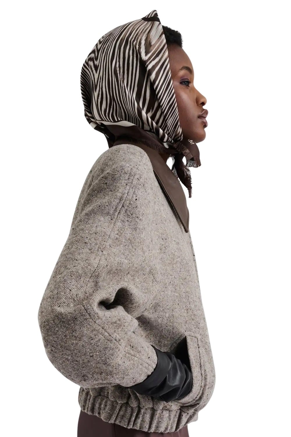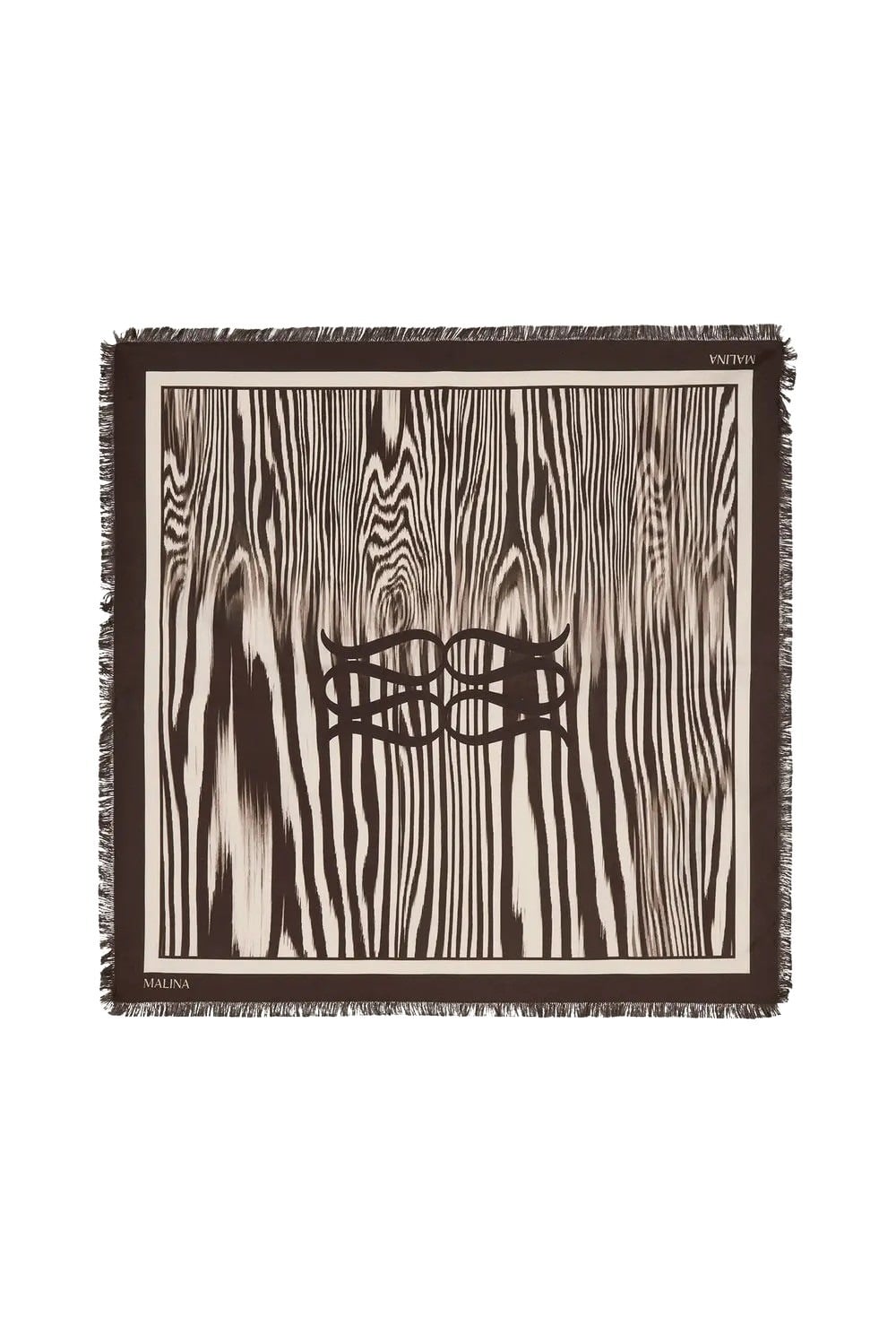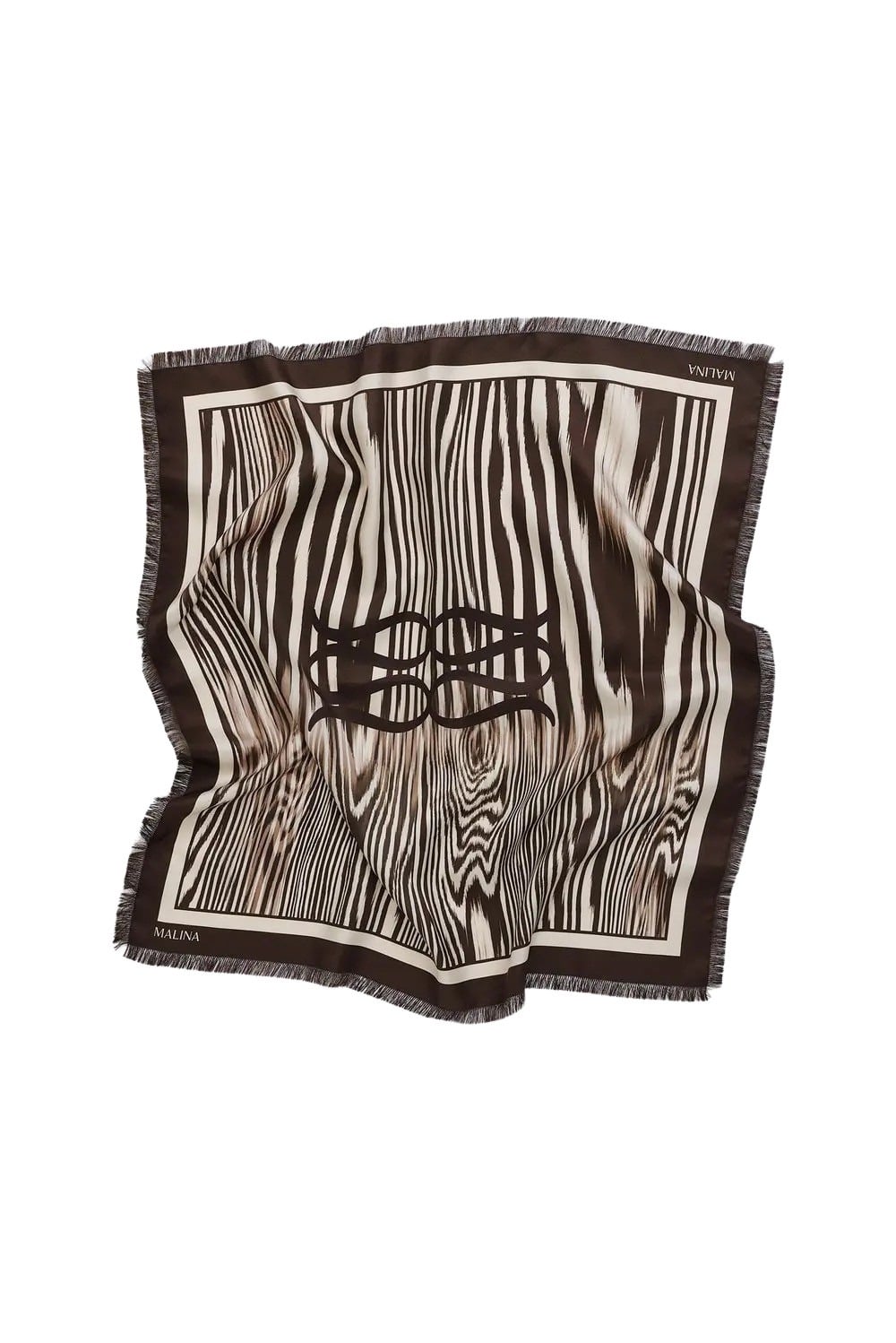 Et luksuriøst silkeskjerf til dame fra Malina med moderne mønster og delikate frynser langs kanten. Laget i glatt silkekvalitet med nydelig glans som gir et elegant uttrykk. Bruk det rundt halsen, i håret eller som et statement-tilbehør på vesken for en sofistikert finish.