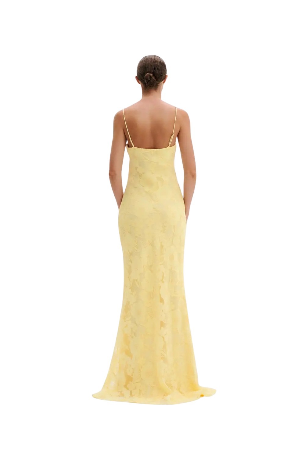 Sorelle Maxi Dress fra Malina. En elegant slipkjole i delikat blondestruktur med vakkert blomsterpreg. Den har smale stropper og en mykt drapert utringning som gir et sofistikert og feminint uttrykk. Perfekt til bryllup, sommerfester og andre anledninger hvor du ønsker en tidløs og romantisk look.