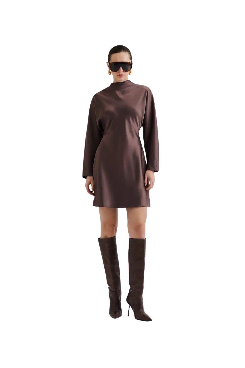 Zora Barrel Long Sleeve Mini Dress – Brun