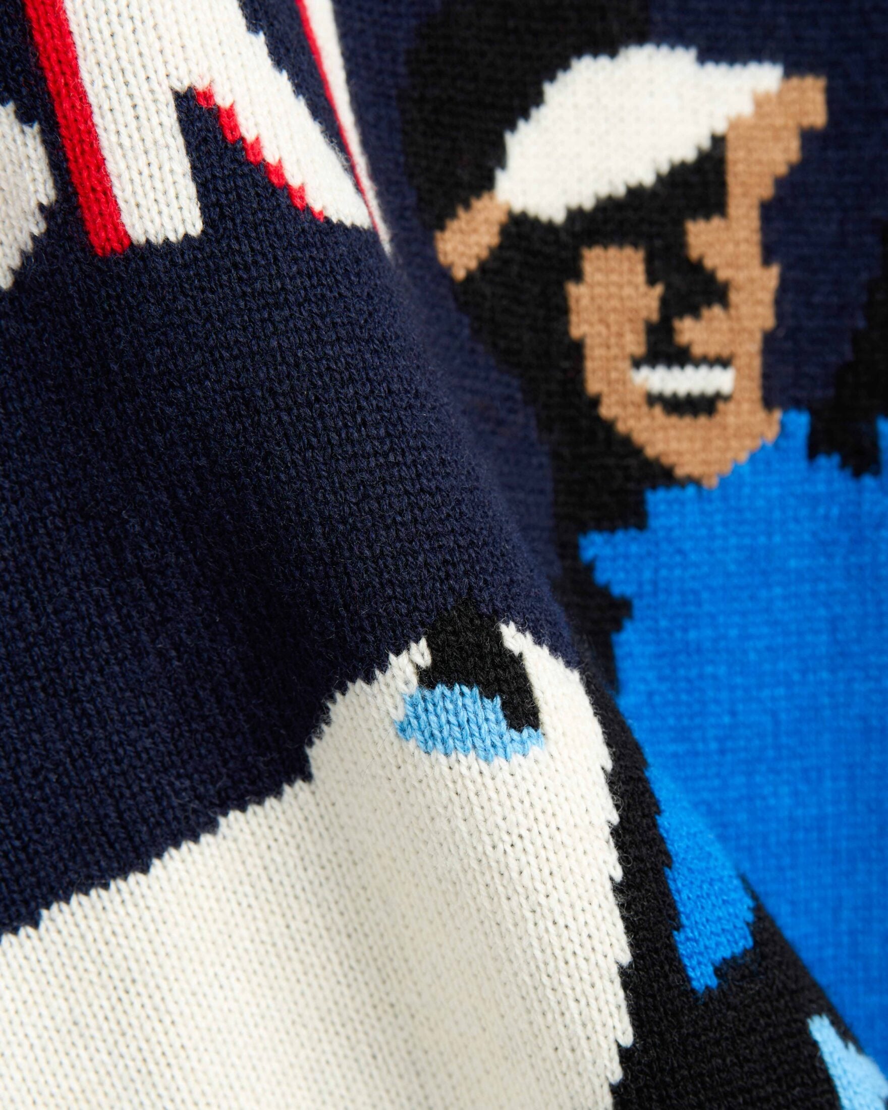 Statement-genser fra MC2 Saint Barth med et humoristisk Après Ski-motiv inspirert av alpinstemning. Strikket i en komfortabel ullblanding som gir varme og et avslappet uttrykk.