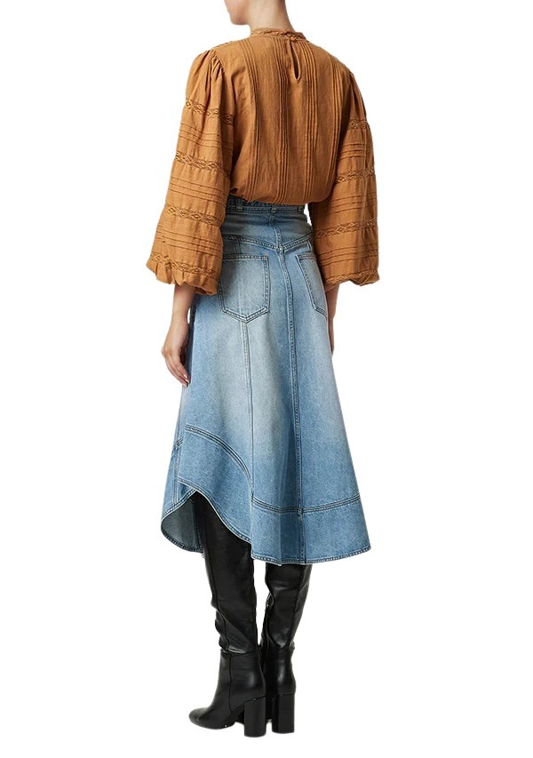 Flott brodert bluse fra MOS The Label. Blusen har store ballongermer og plissédetaljer.