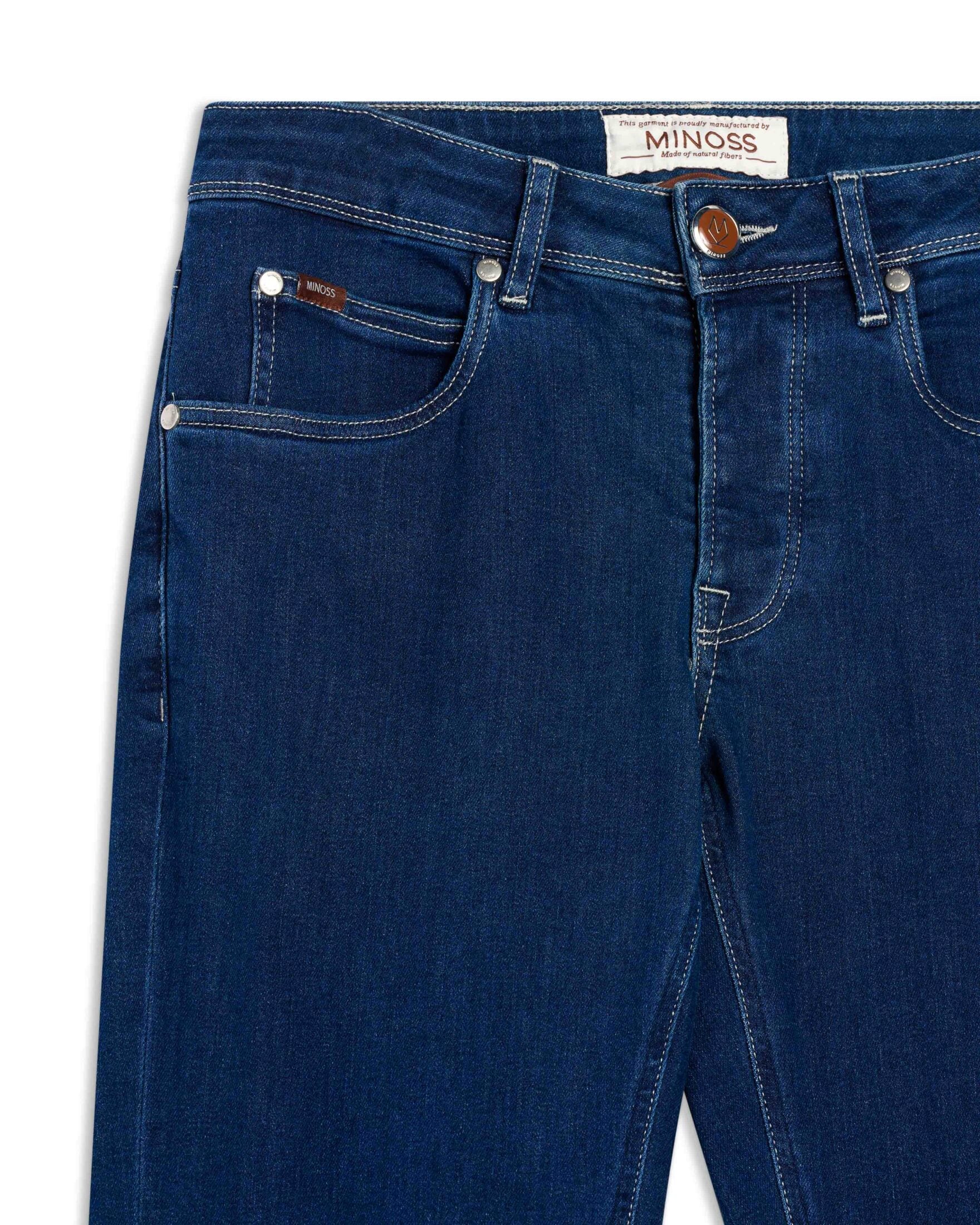 Jeans til herre fra Minoss i stretch-bomullsblanding av høy kvalitet som er behagelig og myk. Buksen har en flatterende regular fit og en allsidig blå vask.