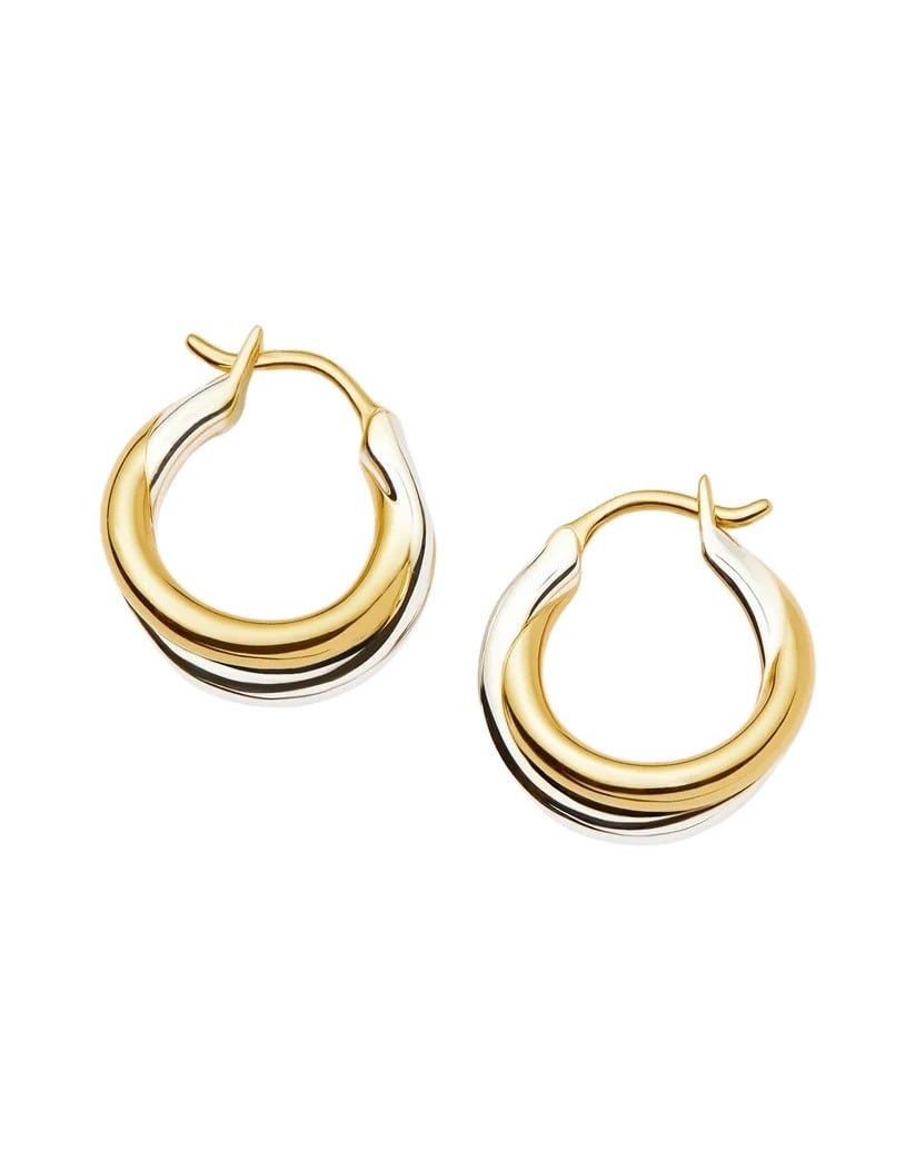 Øreringer til dame fra Missoma. Moderne hoops i en elegant kombinasjon av gull og sølv. Det tvinnede designet gir et unikt og stilfullt uttrykk. Perfekte for å tilføre et luksuriøst preg til både hverdags- og festantrekk.