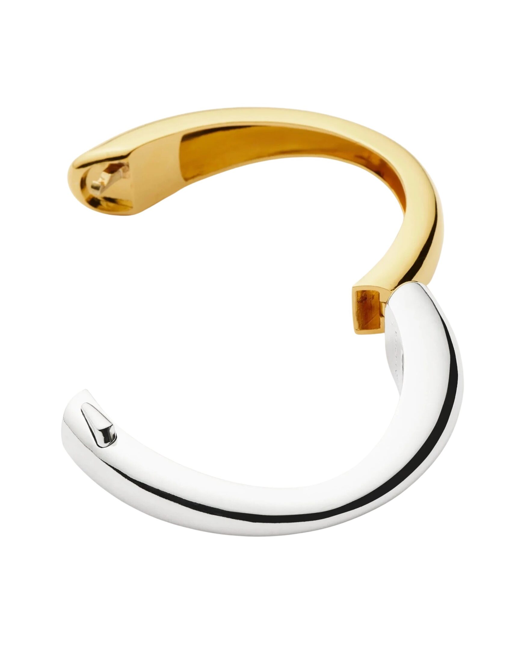 Sculptural Ridge Hinged Bangle fra Missoma er et moderne armbånd i en elegant miks av gull og sølv. Den skulpturelle, avrundede formen gir et tidløst og sofistikert uttrykk. Et perfekt statement-piece som løfter enhver stil.