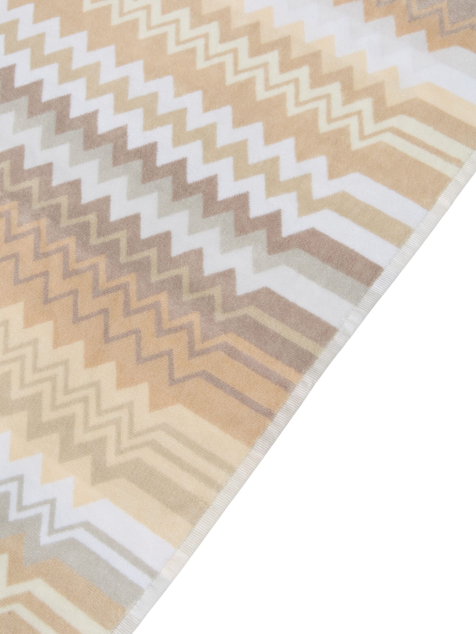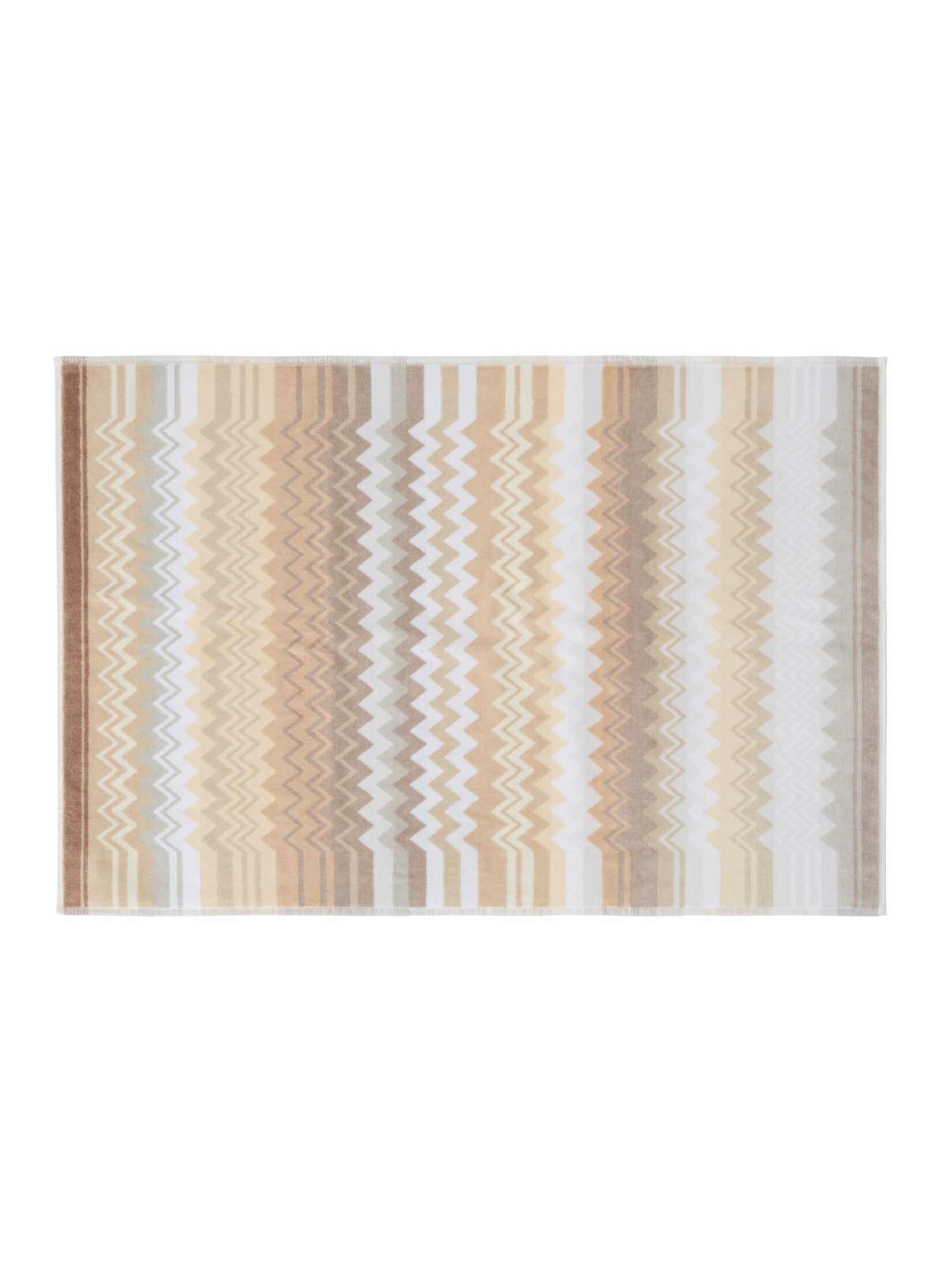 Badematte fra Missoni Home. En elegant baderomsmatte i myk bomull med et subtilt sikksakkmønster i naturlige toner. Den kombinerer komfort og tidløs design, og gir badet et sofistikert og harmonisk uttrykk.