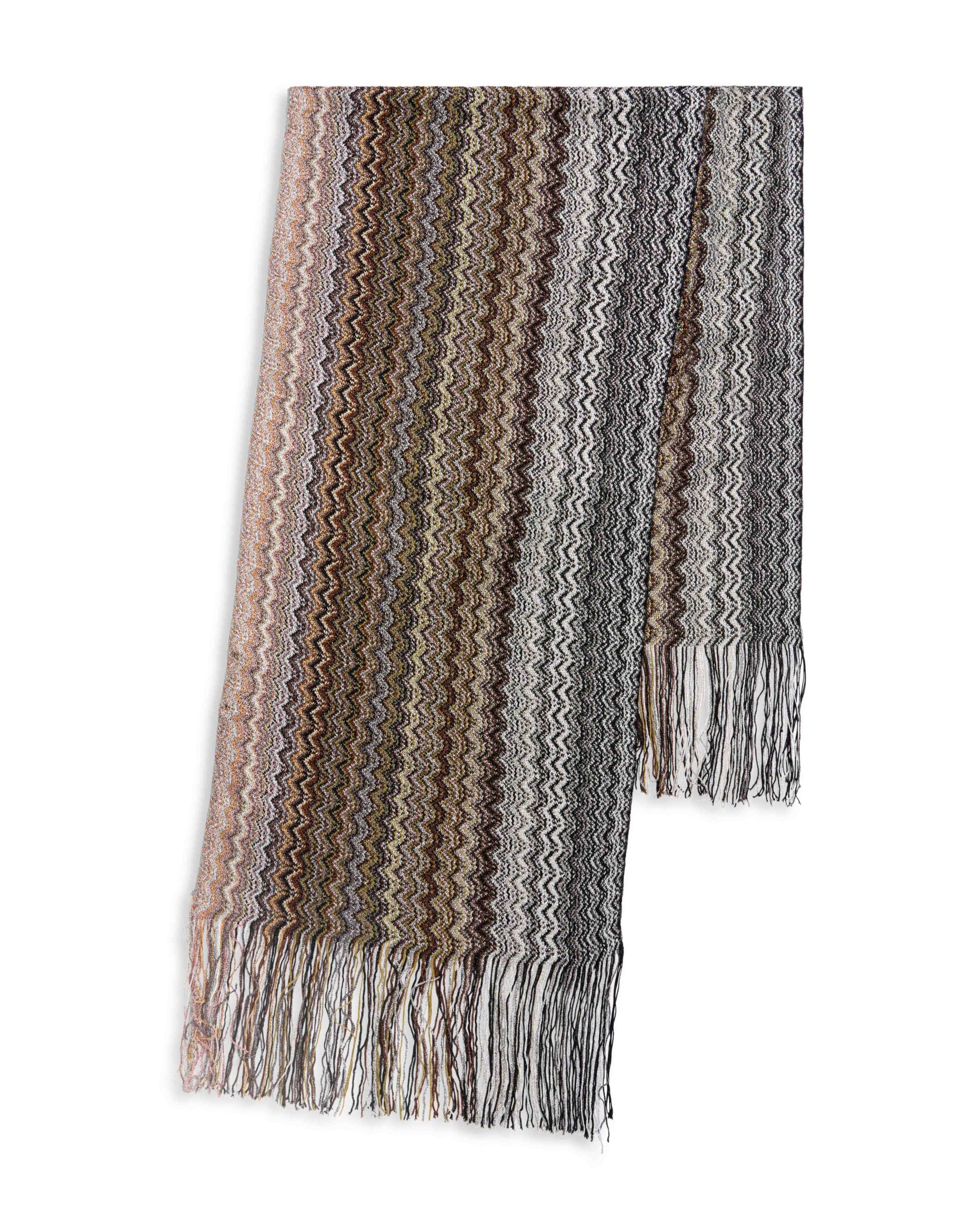 Skjerf til dame fra Missoni. Laget i en elegant fargekombinasjon med glitter i deres ikoniske sikksakk-mønster.