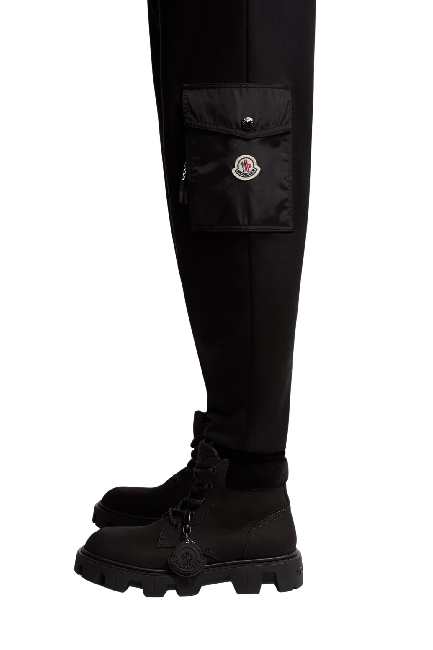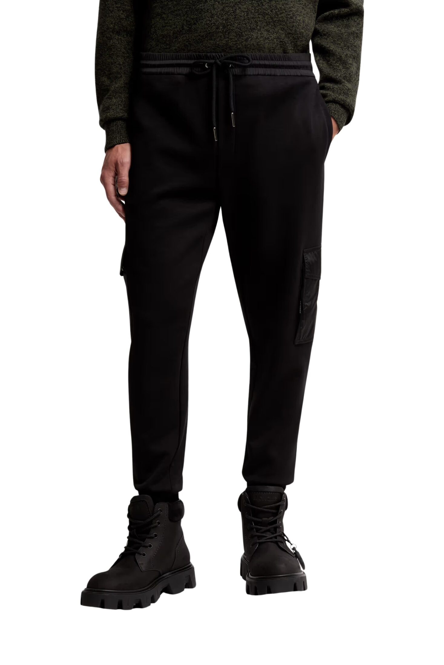 Joggebukse til herre fra Moncler. Joggebuksen eksperimenterer med kontraster og kombinerer myk bomullsfleece med skinnende nylondetaljer. En justerbar midje og cargolommer fullfører designet. Kombiner med en collegegenser for et avslappet helhetsantrekk.