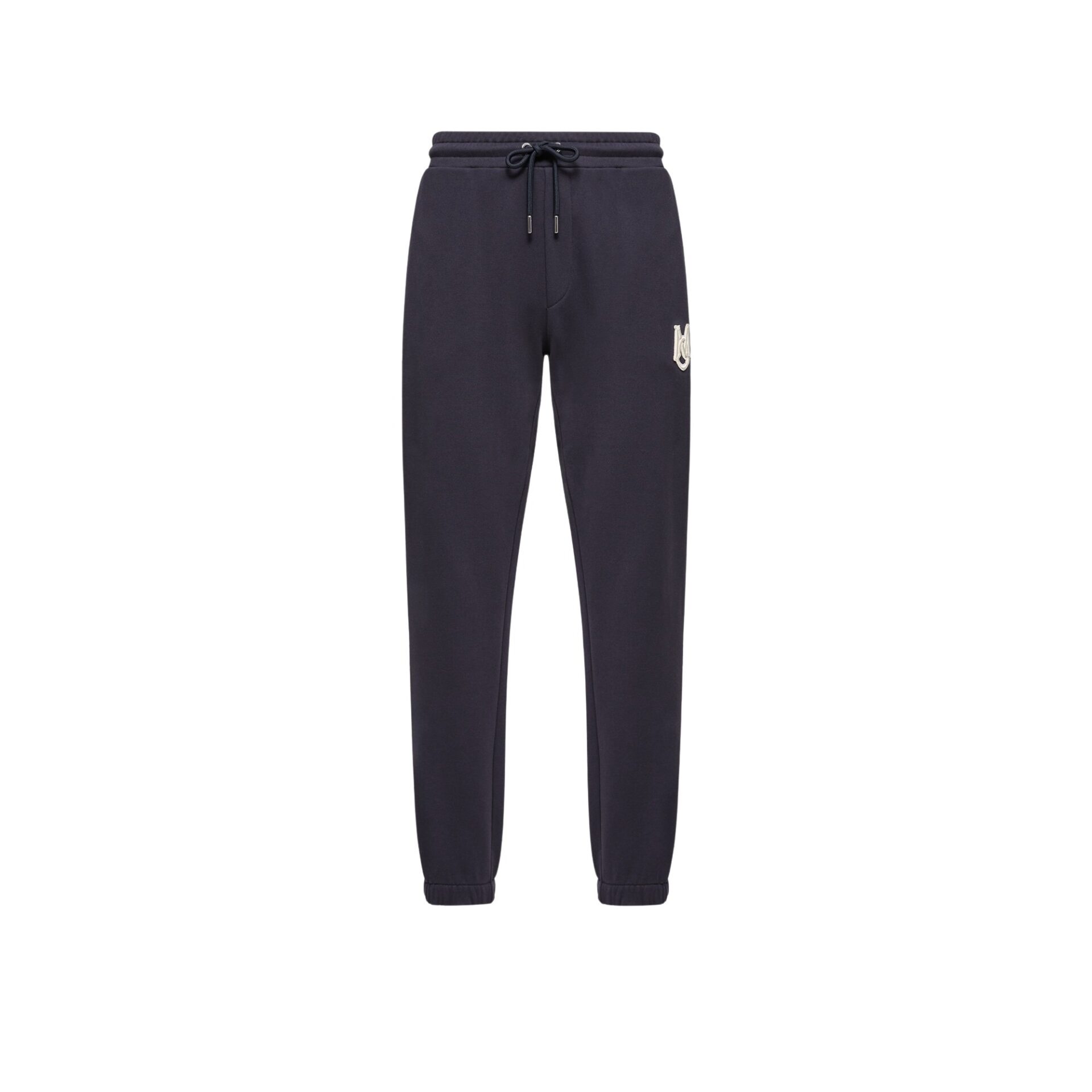 Joggebukse til herre fra Moncler, laget i myk og komfortabel bomull med sporty uttrykk. Modellen har elastisk liv med snøring og ribbestrikkede mansjetter nederst som gir en avslappet, men strukturert passform. En brodert logo på låret setter en tydelig signatur og gjør buksen til et stilrent hverdagsvalg.