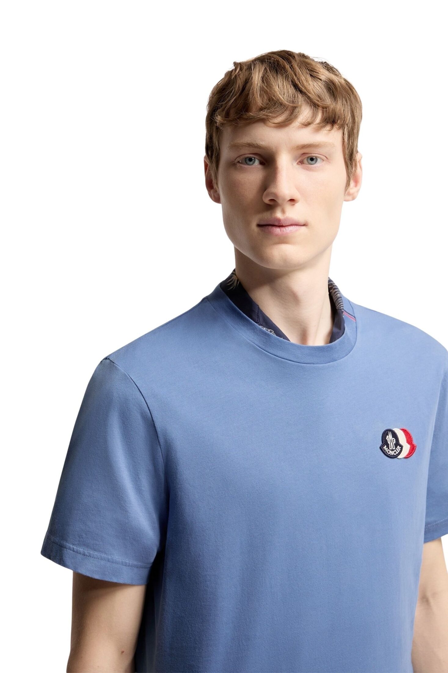 Embroidered Tricolor Logo Cotton T-Shirt – Blå