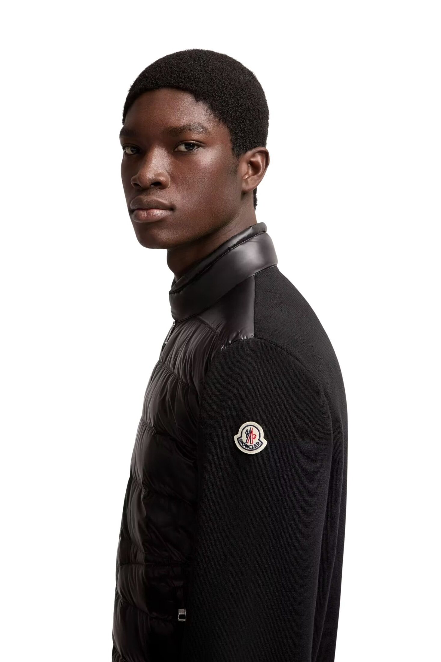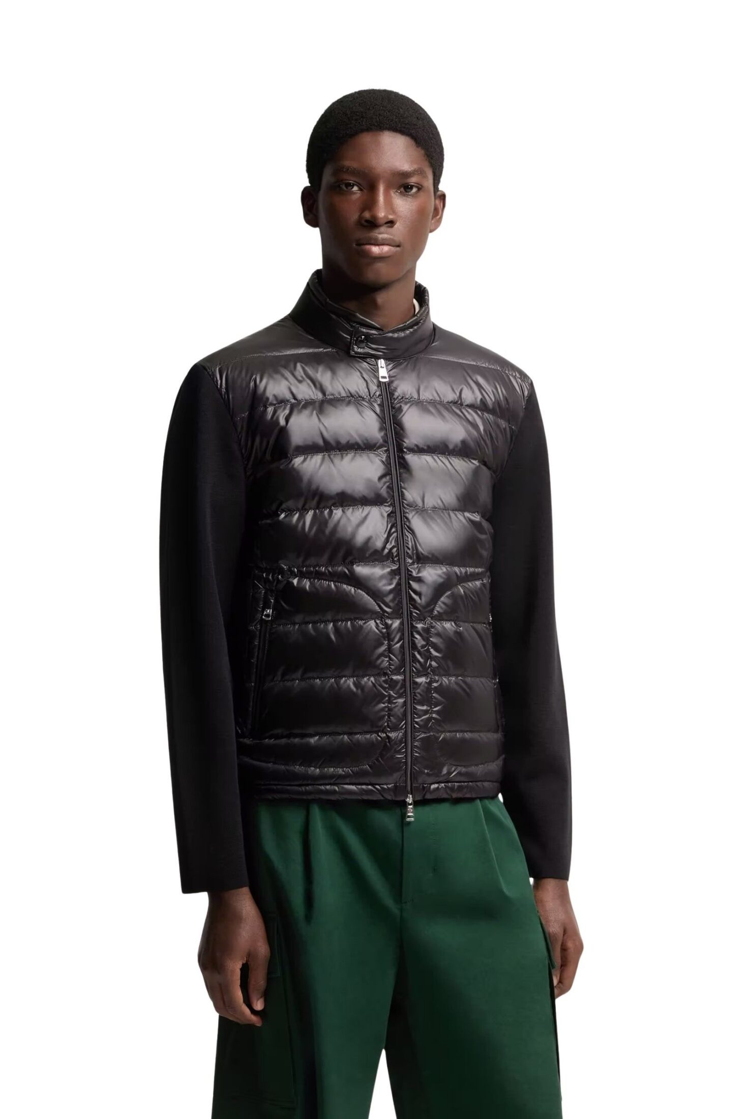 Cardigan til herre fra Moncler som kombinerer ultrafin ull med en funksjonell, dunfylt front. Modellen gir lett varme og et sofistikert uttrykk, og fungerer like godt alene på mildere dager som under en jakke når temperaturen synker.