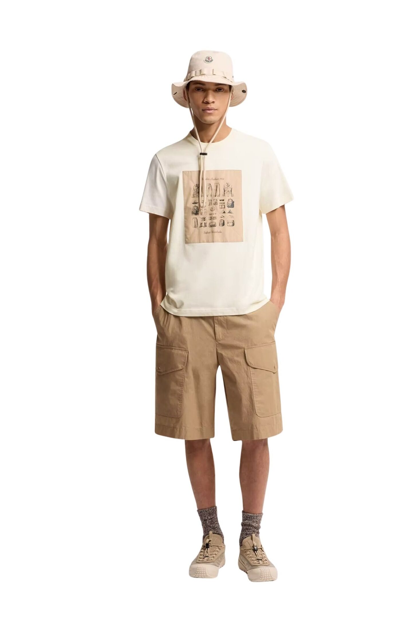 T-skjorte til herre fra Moncler, laget i myk bomullsjersey og dekorert med et safari-inspirert print hentet fra merkets arkiver. Designet kombinerer eventyrlig arv med et moderne uttrykk, og den klassiske modellen med rund hals og korte ermer gjør den til et naturlig valg på varmere dager.