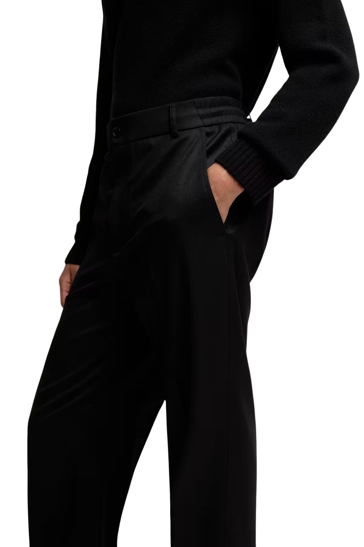 Bukse til herre fra Moncler. Designet som et eksklusivt basisplagg, laget av den mykeste ullen. Strukturert silhuett med press i front og behagelig elastisk linning bak for perfekt passform.