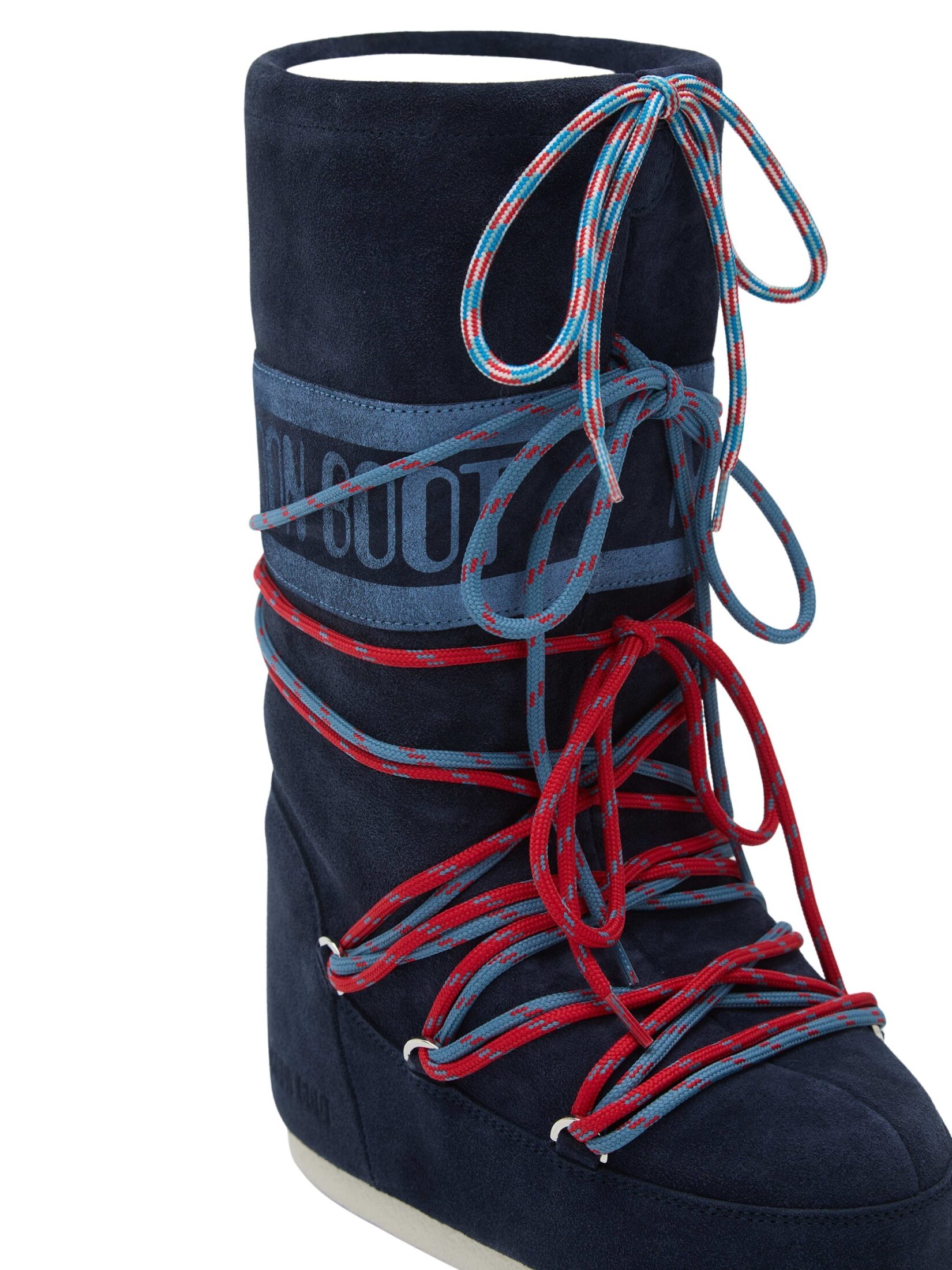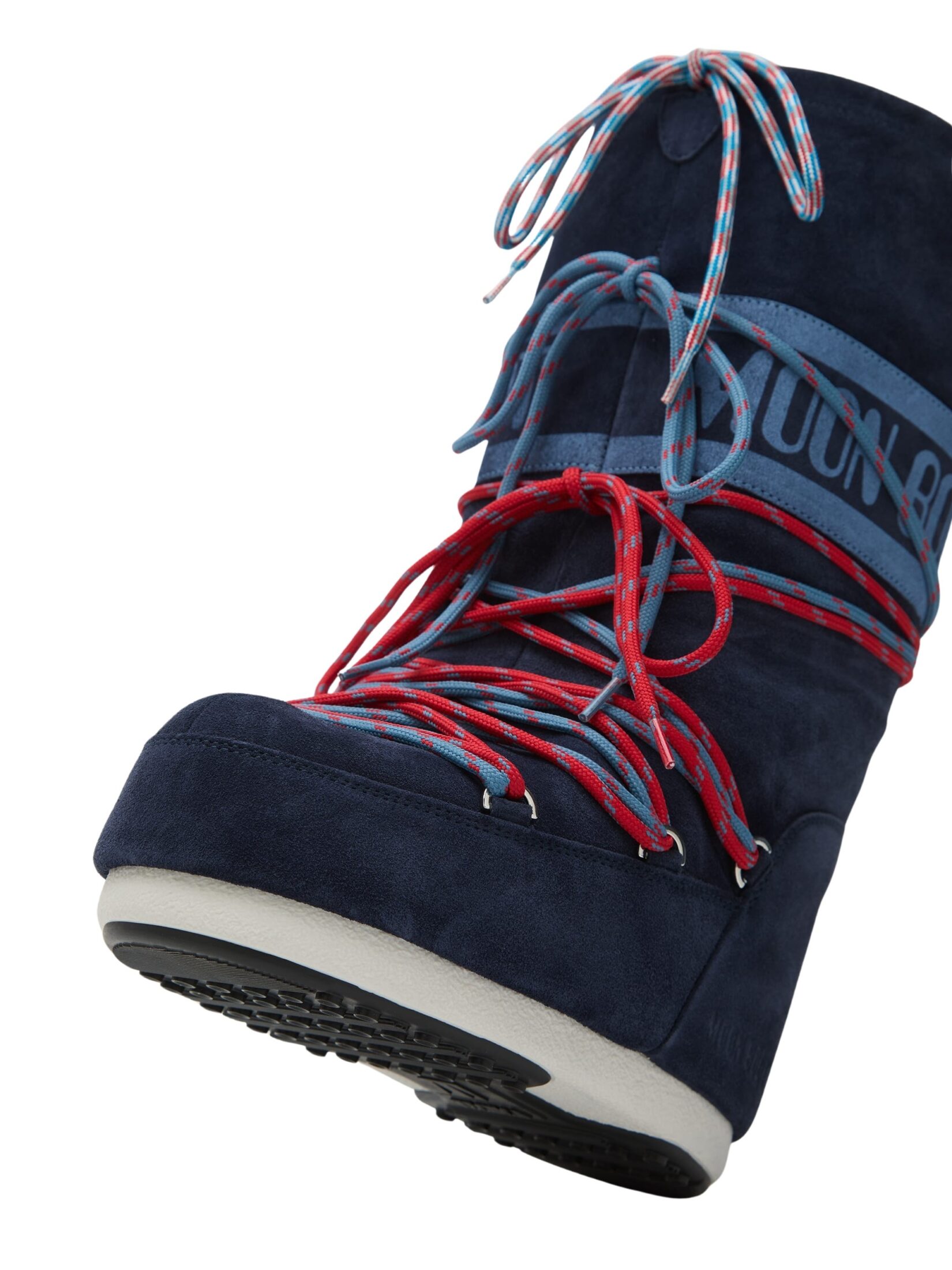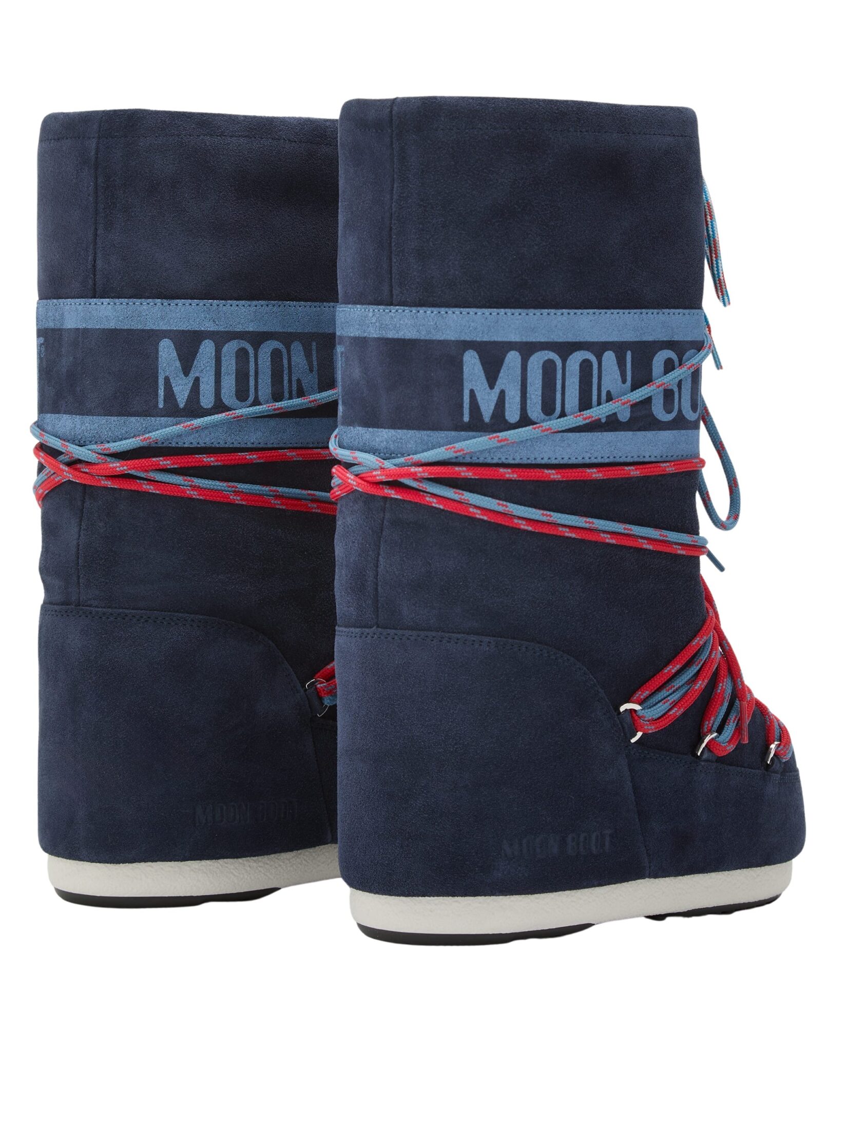 Boots til dame fra Moon Boot. En tidløs vinterfavoritt i luksuriøs semsket skinn. Icon Navy Suede kombinerer ikonisk Moon Boot-design med en eksklusiv finish og fantastisk komfort. Den varme innerforet holder deg god og lun på kalde dager, mens den robuste sålen gir godt grep på glatt underlag. De karakteristiske snørene og den dype marineblå fargen gjør støvlene både stilige og funksjonelle. Perfekt til alt fra afterski til bytur i vinterkulden.