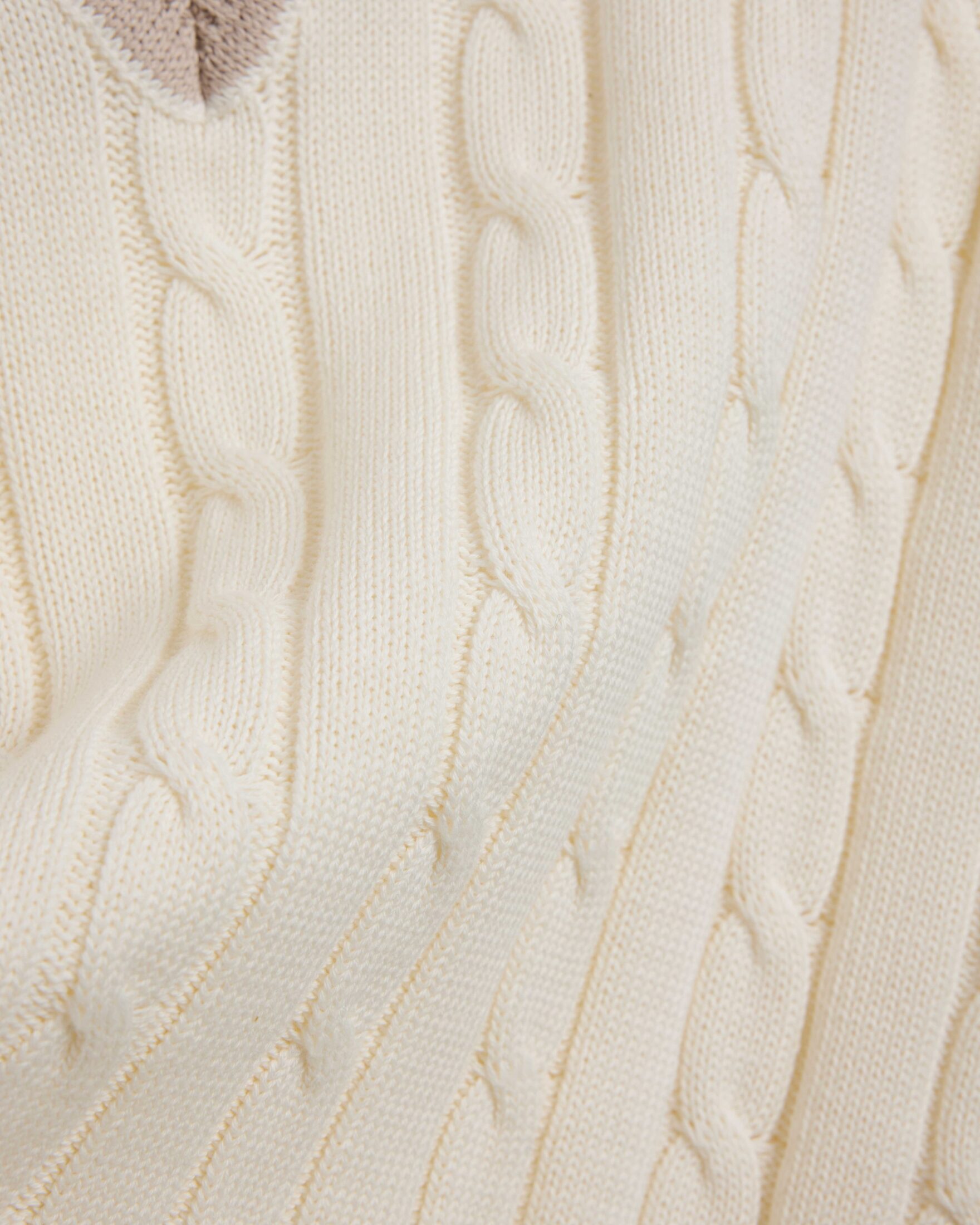 Cotton Cable Knit V-Neck Sweater – Hvit