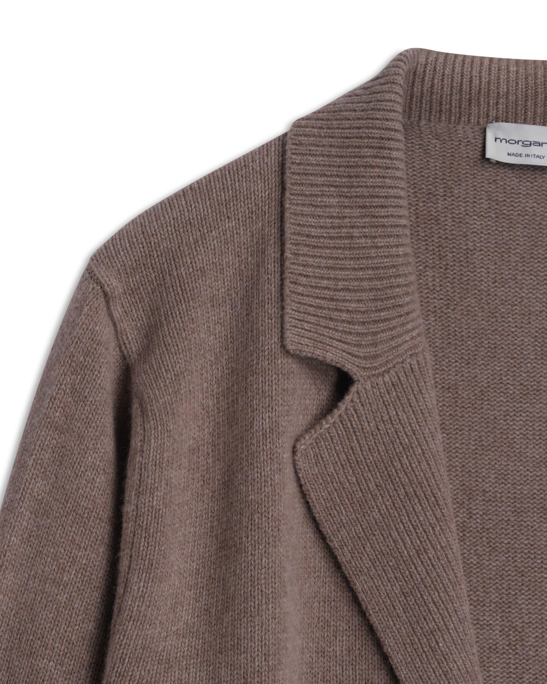 Elegant cardigan til herre fra Morgano, laget i 90% merinoull og 10% kasjmir for en myk og luksuriøs følelse. Den har notch lapels, knappelukking og lommer i front som gir et tidløst og sofistikert uttrykk. Perfekt som et lett lag over skjorte eller t-skjorte. En italiensk klassiker som kombinerer komfort, stil og kvalitet.