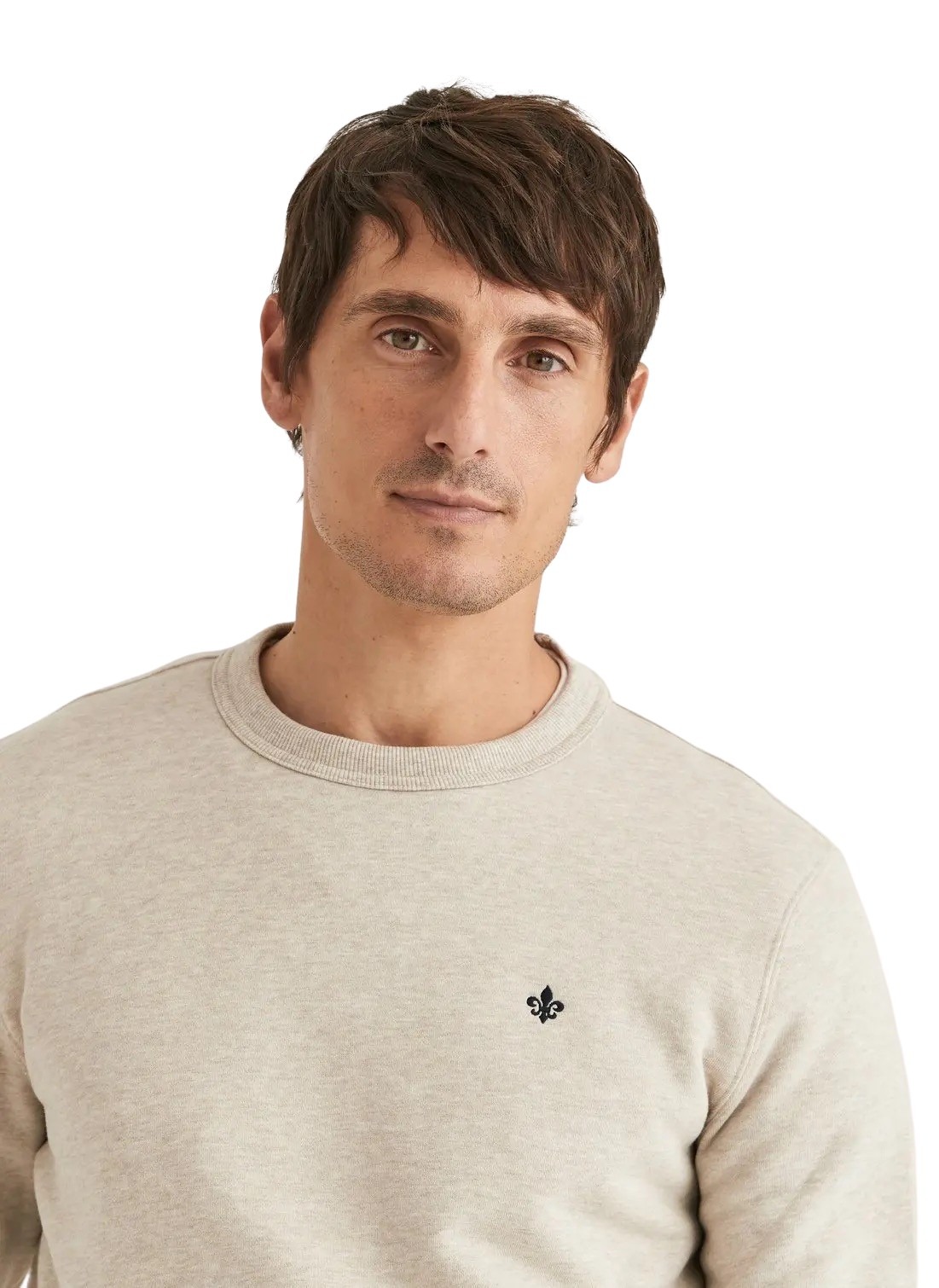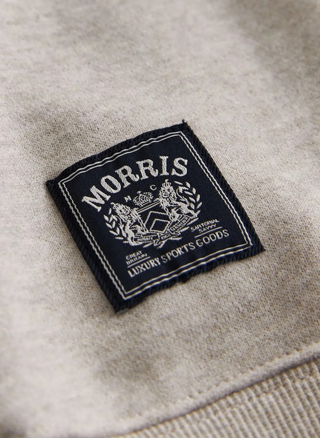 Rund hals genser til herre fra Morris Stockholm. Denne genseren er laget i en supermyk og lett bomullskvalitet. Den er designet med en slank passform og Morris liljebroderi på brystet.