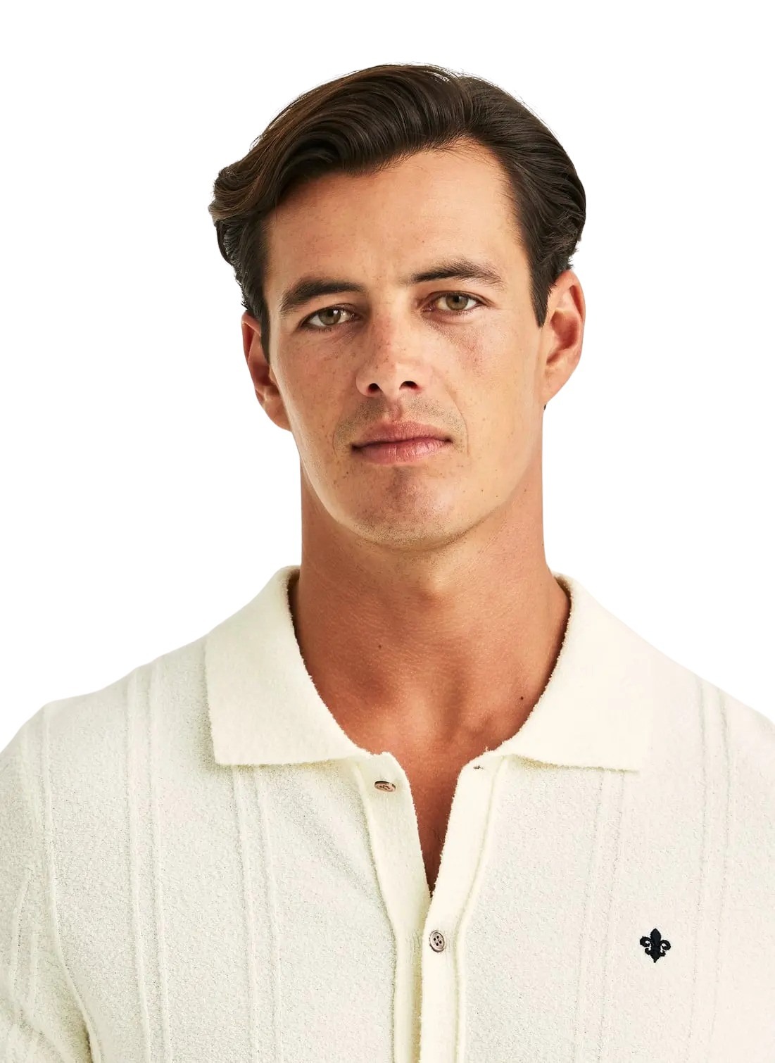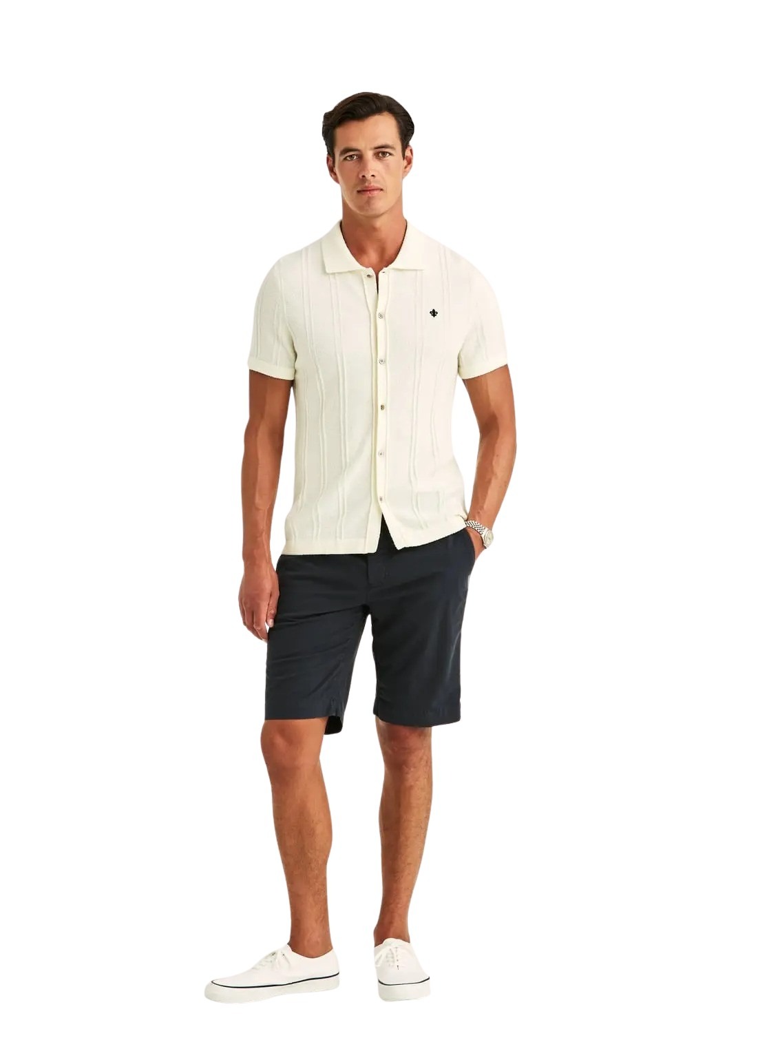 Clayton Knitted SS Shirt fra Morris Stockholm. En stilren skjorte med kort erm i myk, strikket kvalitet. Den kombinerer et retroinspirert uttrykk med moderne komfort. Bruk den lukket til chinos eller åpen over en t-skjorte for en avslappet og velkledd stil.