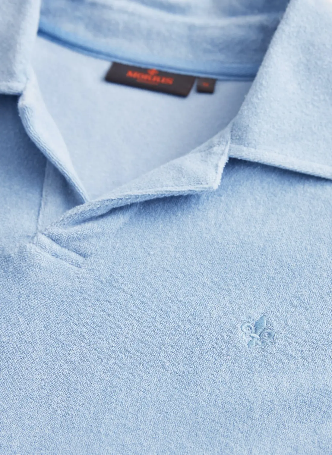 Delon Terry Shirt fra Morris Stockholm. Laget i myk bomulls-frotté som gir et avslappet, men velstelt uttrykk. Den lette strukturen gjør den perfekt for varme dager og rolige helger. Bruk den åpen over en t-skjorte eller alene med shorts eller chinos for en enkel sommerstil.