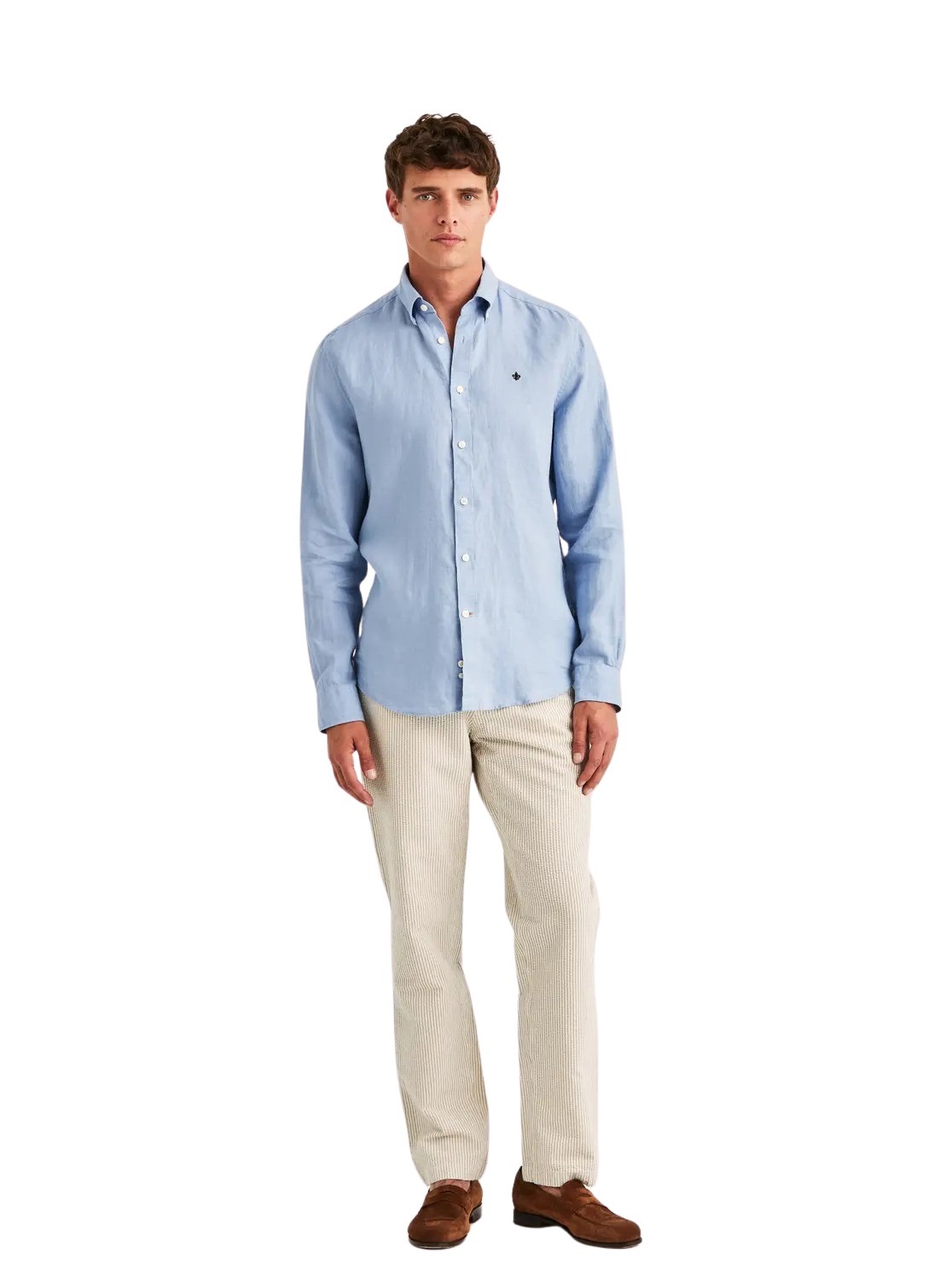 Douglas Linen Shirt fra Morris Stockholm. Laget i ren lin som føles lett og luftig på varme dager. Den klassiske passformen og button down-kragen gir et tidløst uttrykk. En enkel og velkledd skjorte som passer perfekt til både chinos og shorts.