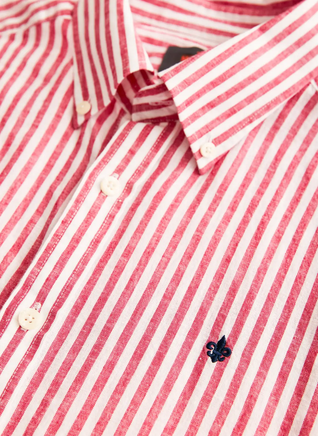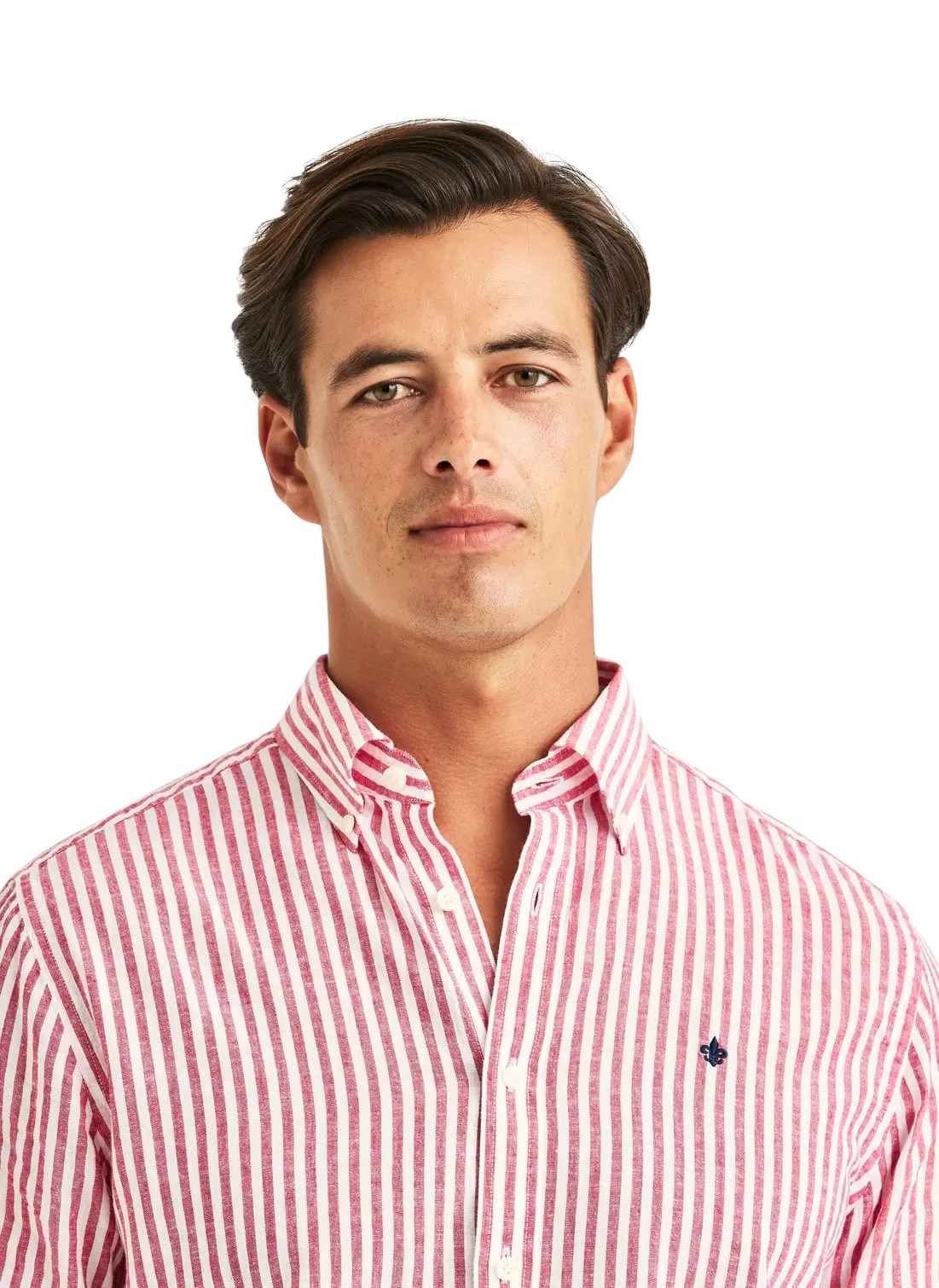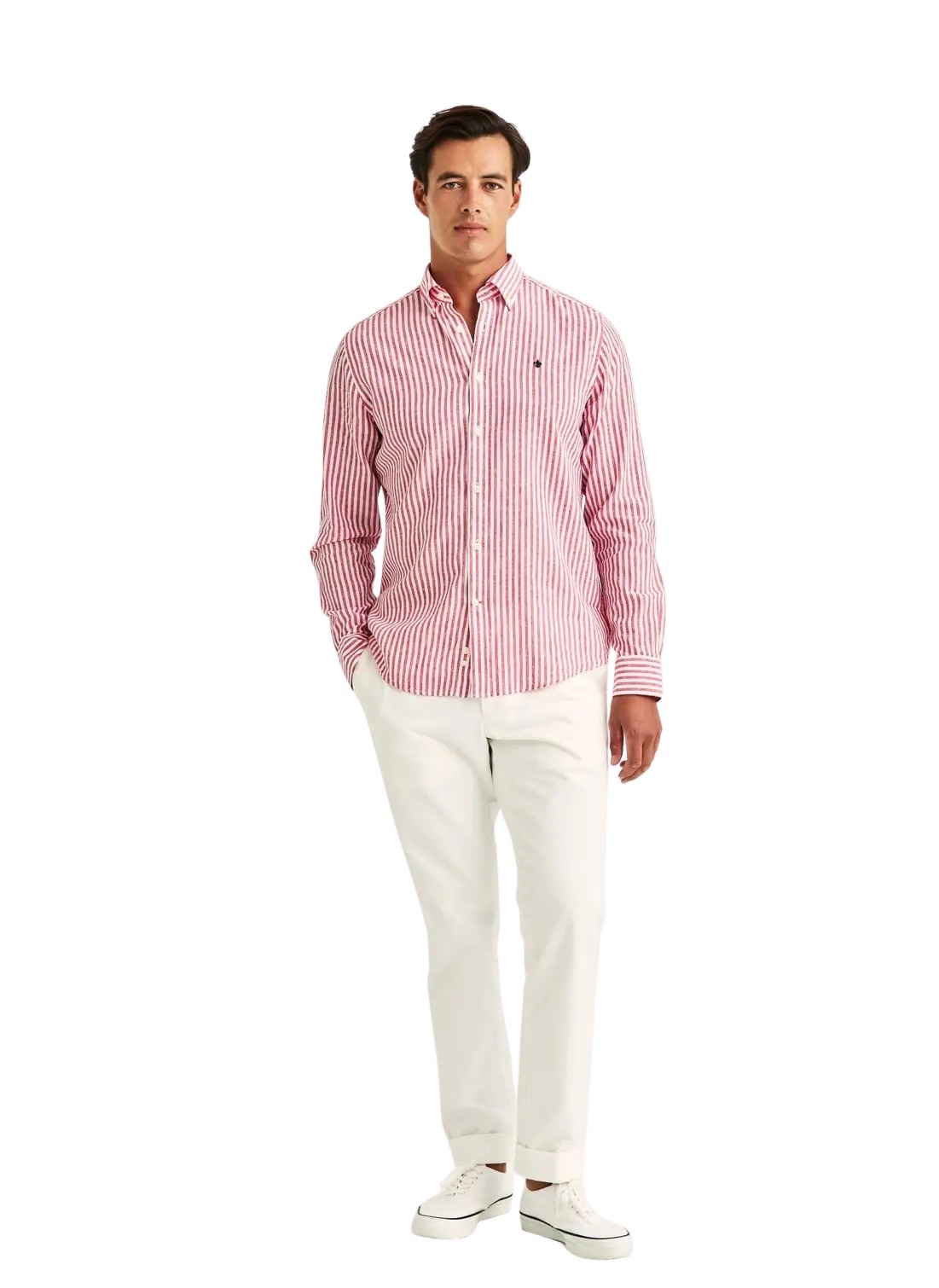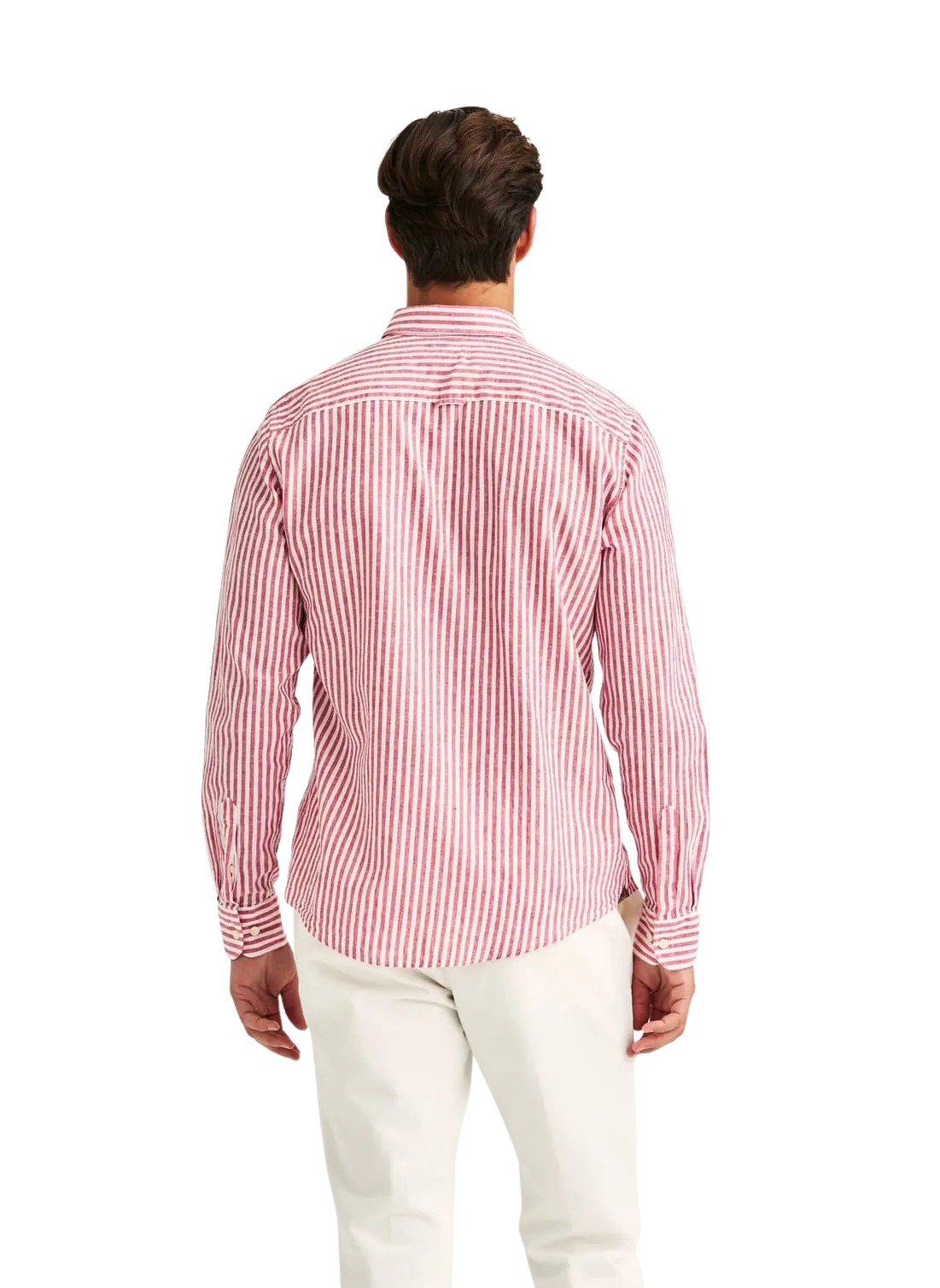 Douglas Linen Stripe Shirt-Classic Fit – Rød